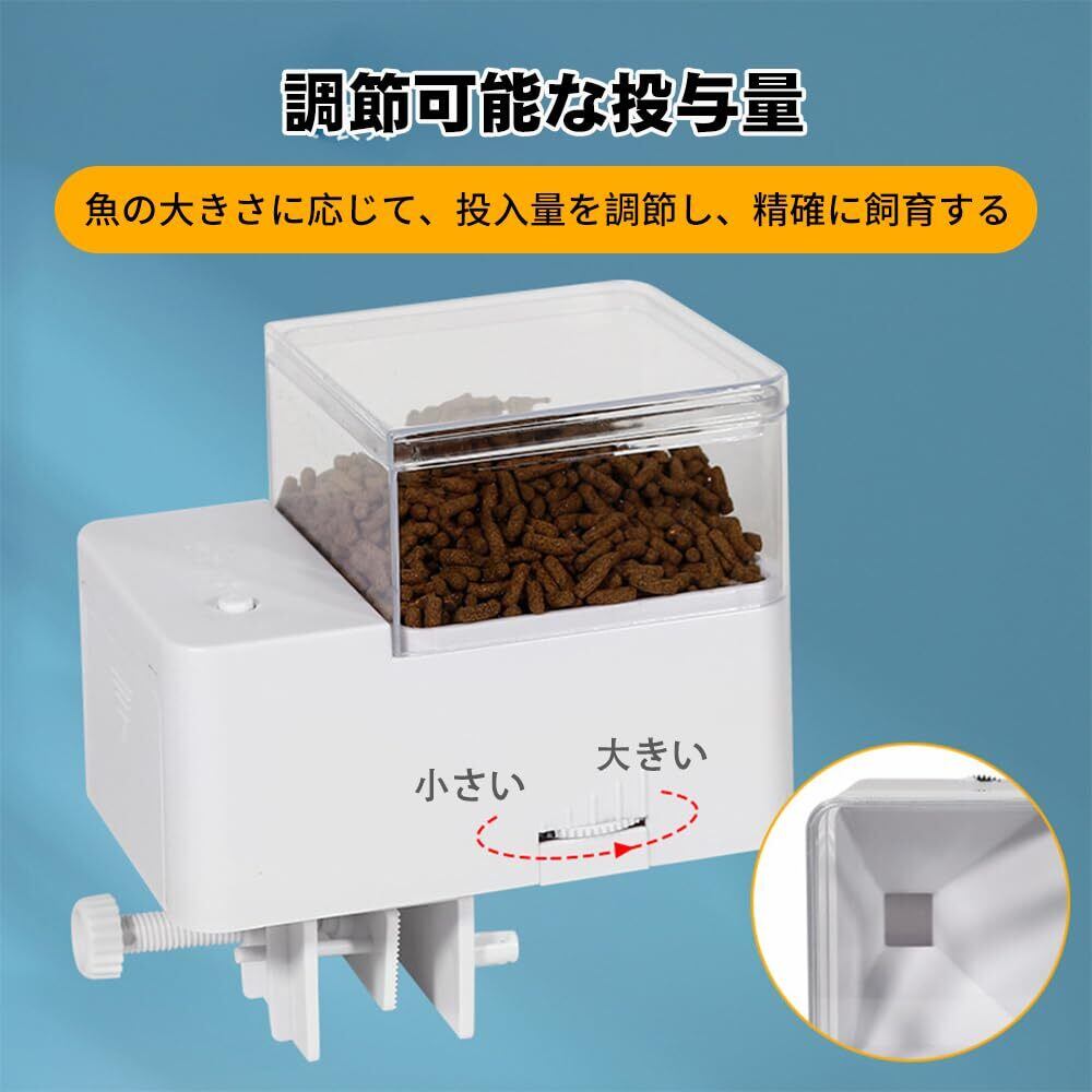魚自動給餌器 50g大容量 餌やり器 定時 時間設定 給餌量調整可能 密閉式防湿設計 静音 多段階&多回転数 水族館 熱帯魚/金魚/亀 小魚の 水槽や小魚の飼育に最適