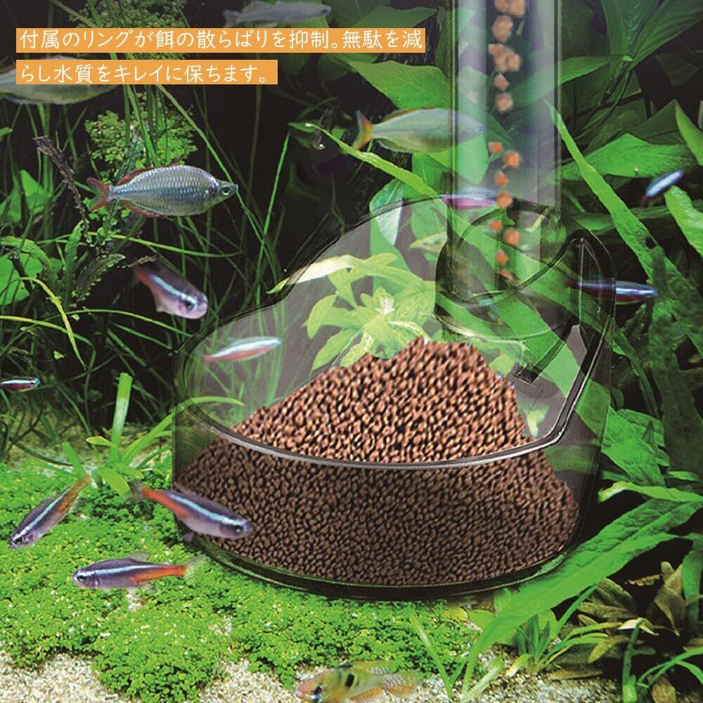 【餌の拡散を防ぐ浮き型リング付き】付属のリングが餌の散らばりを抑制。無駄を減らし水質をキレイに保ちます。