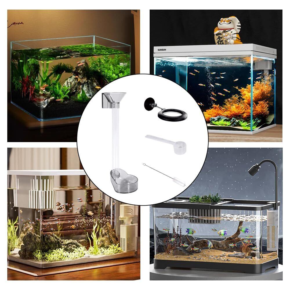サムコス 魚給餌器チューブセット給餌受け皿 給餌器 透明 餌 拡散防止 水質汚染を防ぐために リング付きエサ 魚エビ給餌チューブ餌入れ水槽用品
