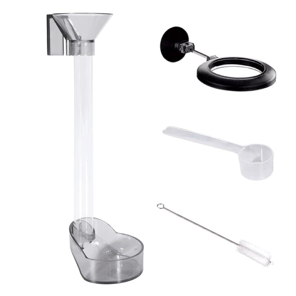 【便利な付属品が充実】計量スプーン・掃除ブラシ・吸盤付き。給餌からメンテナンスまでこれ1台で完了。