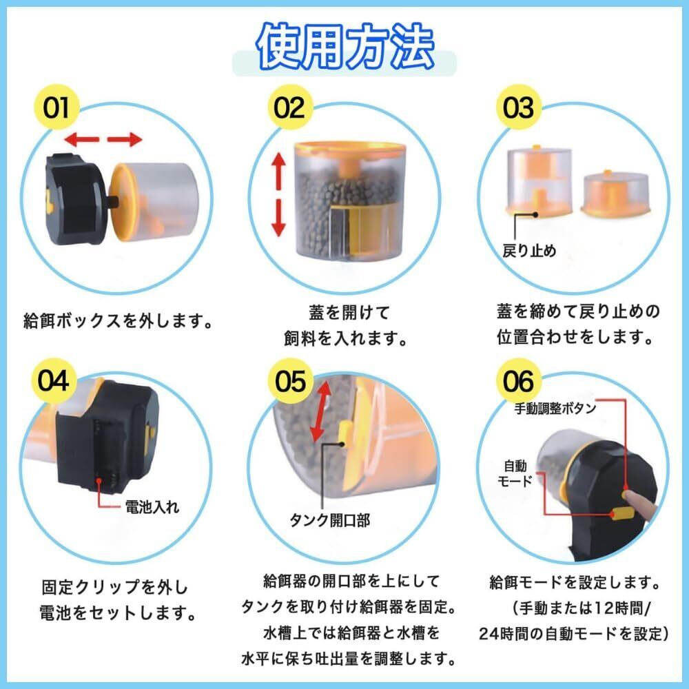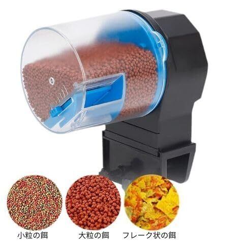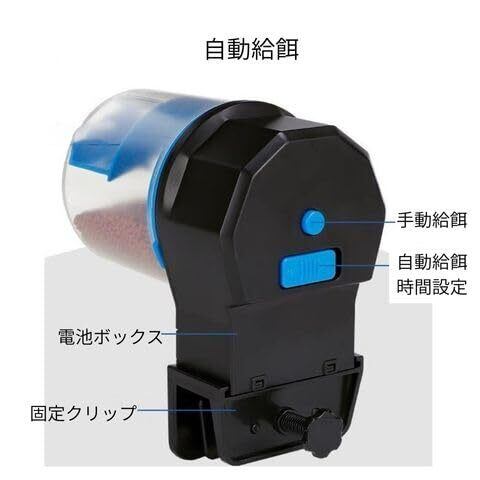 【ボタンひとつで、毎日きちんと給餌】水槽用自動給餌器 魚用フィーダー 手動・自動モード対応 電池式 (ブラック×ブルー)