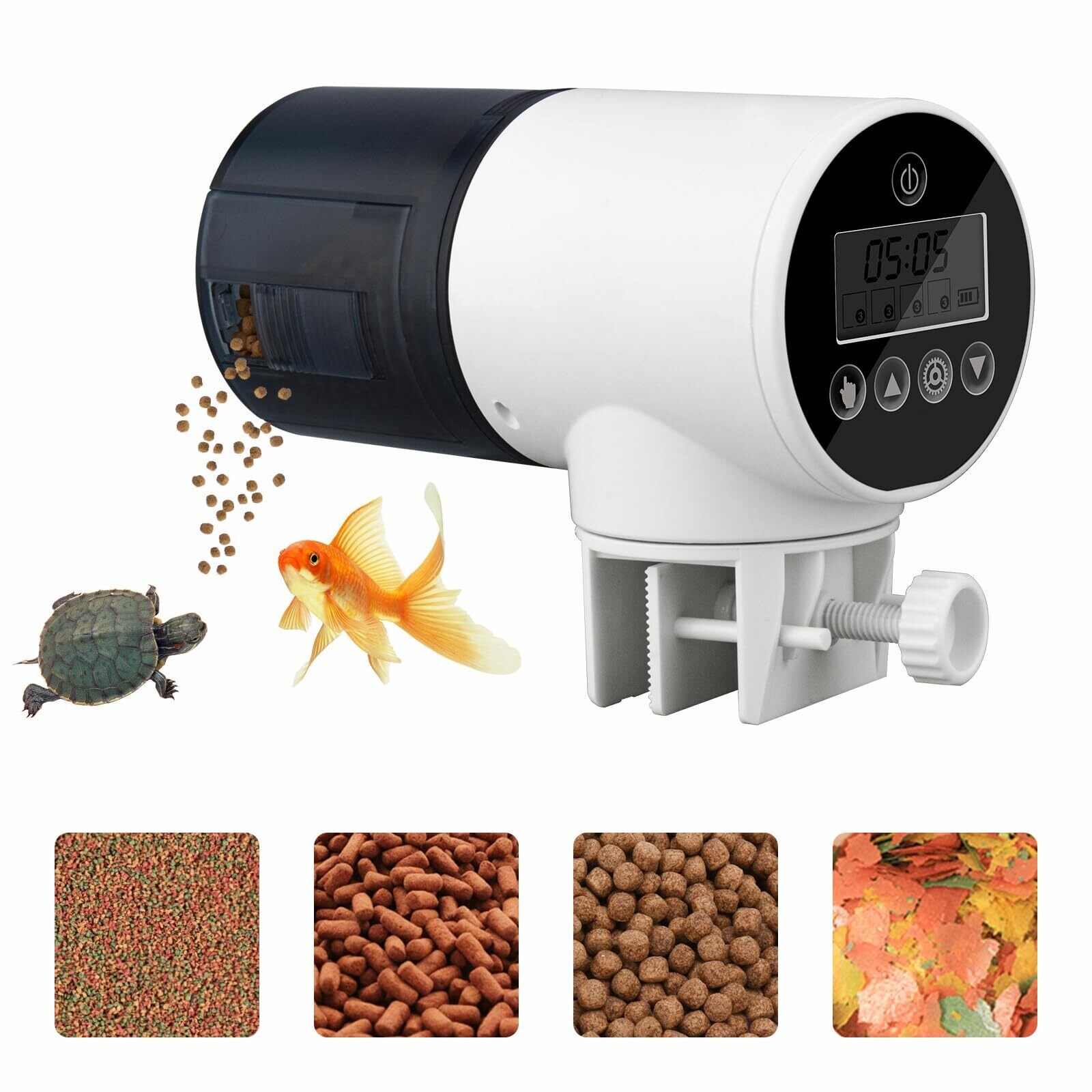 BlueFire 魚自動給餌器 餌やり器 オートフィーダー 熱帯魚 金魚 水族水槽用 多段階&多回転数 自動餌やり機 配給量調節可能 静音 留守中の餌やり ホワイト