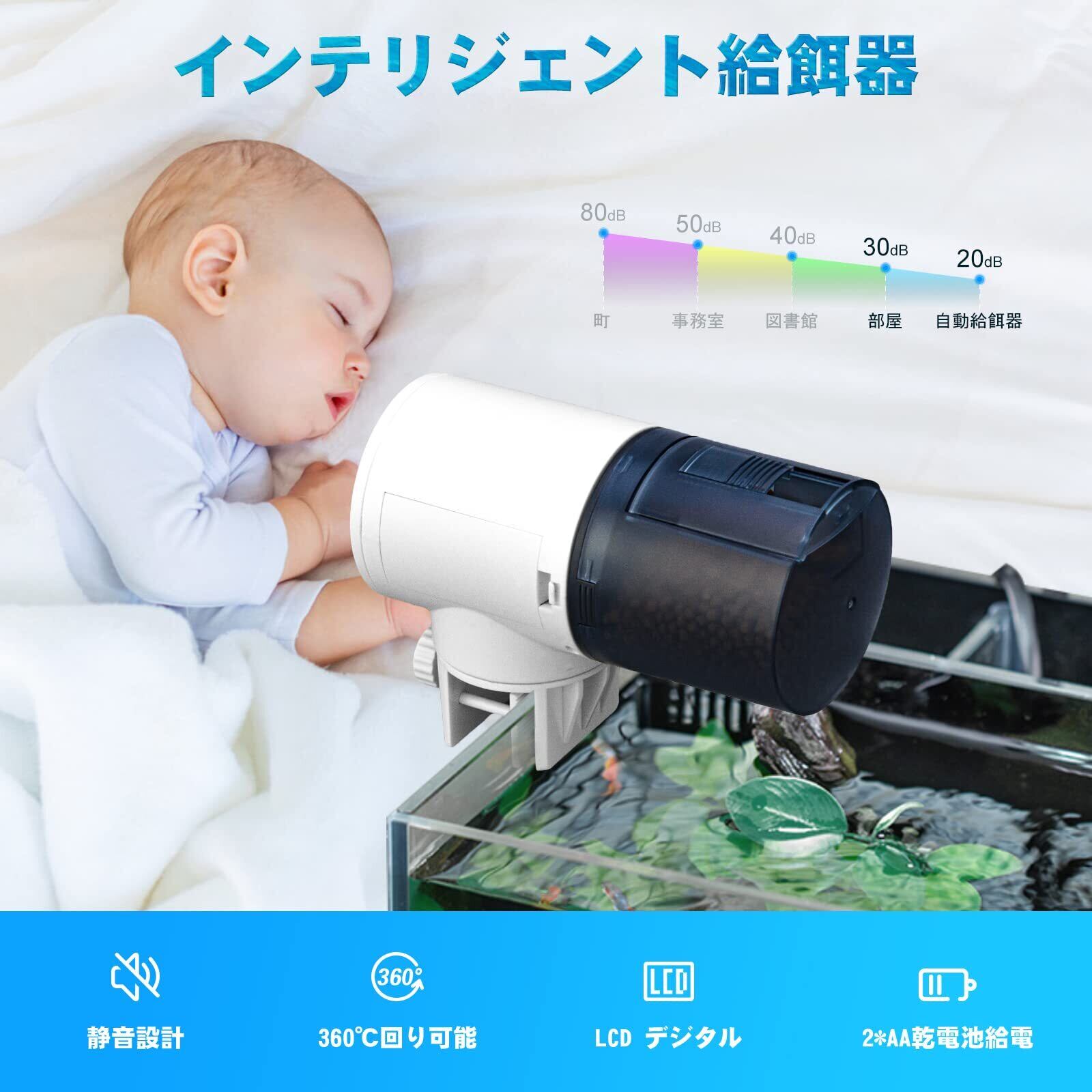 高い実用性:このフィーダーは2本のAA電池だけで3−6か月間動作できます。従来のプラグ式電源より安全です。200mlのエサケースはフレークタイプ、パウダータイプやストリップタイプ等の餌に適しています。水槽と水族館に適用し、魚イモリカエル様々な魚類に満足できます。それに、回転時に音も気にならないほど静かで、お昼寝にもピッタリ!