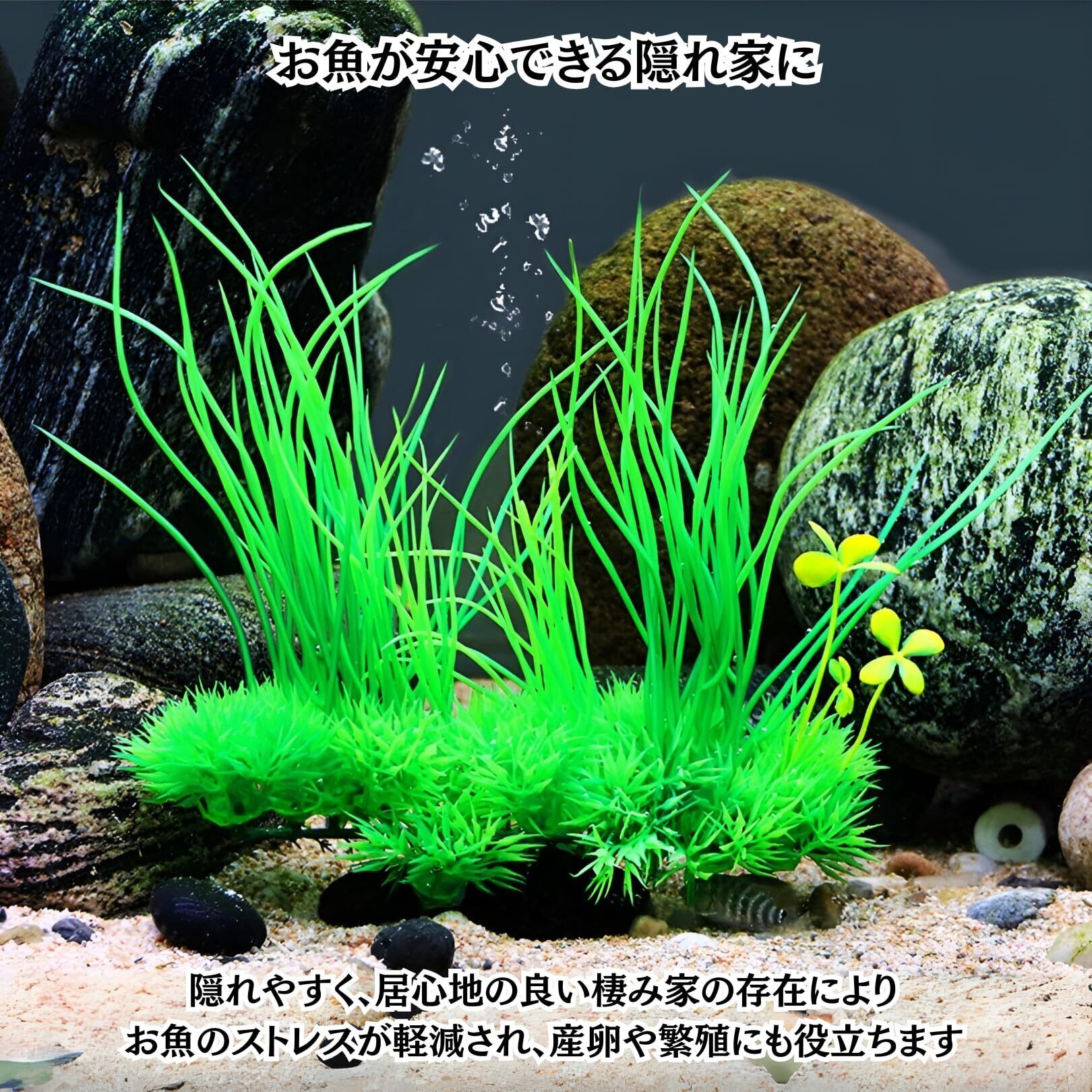 Charmoon アクアリウム 人工水草 オーナメント 水槽 隠れ家 フェイク 装飾 3種4個 セット