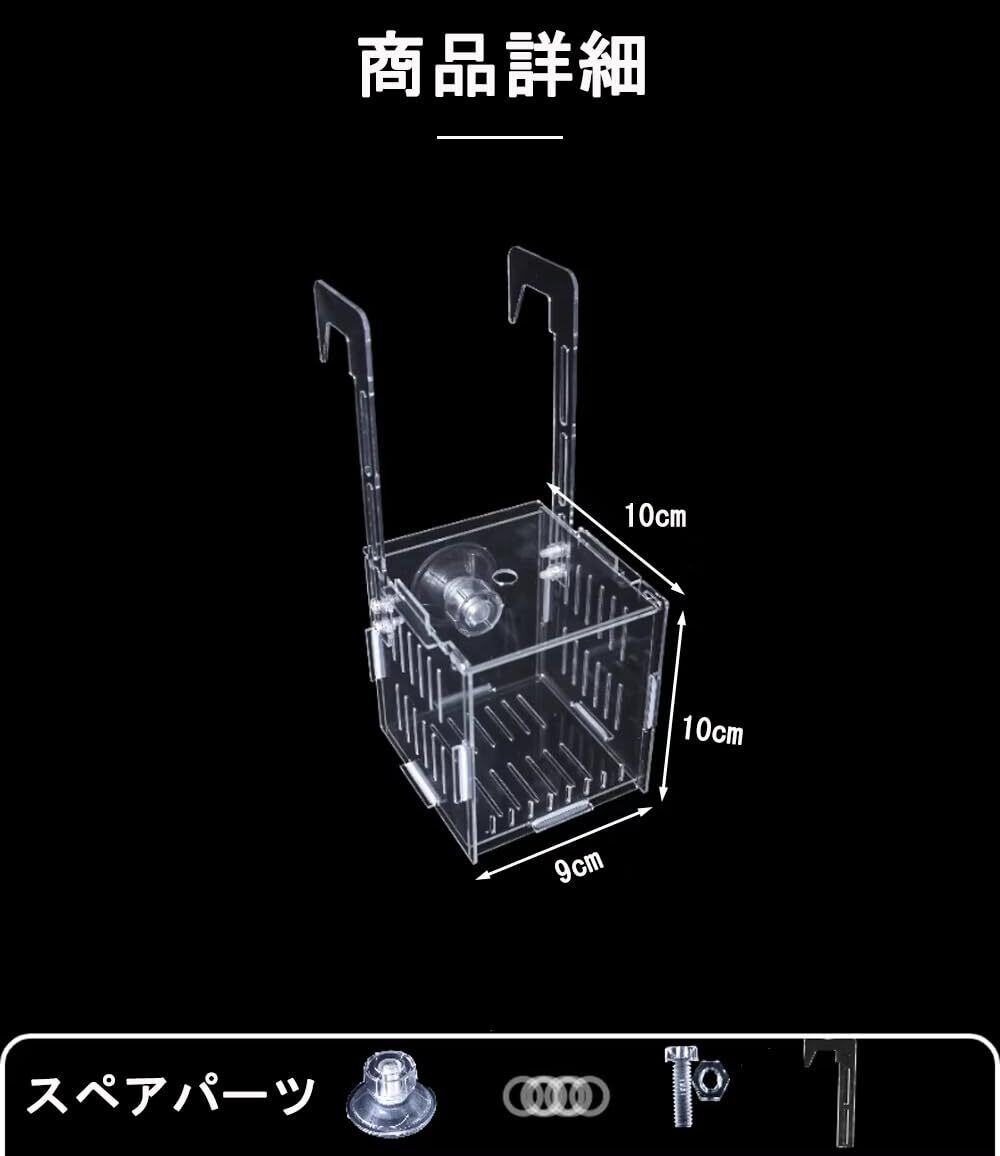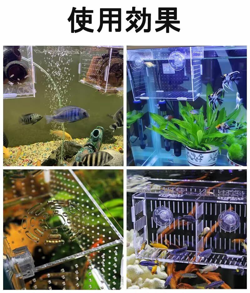 アクリル素材で作られており、耐久性と安定性に優れ、変形しにくい設計です。小型水槽や大型水槽に最適で、魚の隔離や稚魚の育成に最適です。