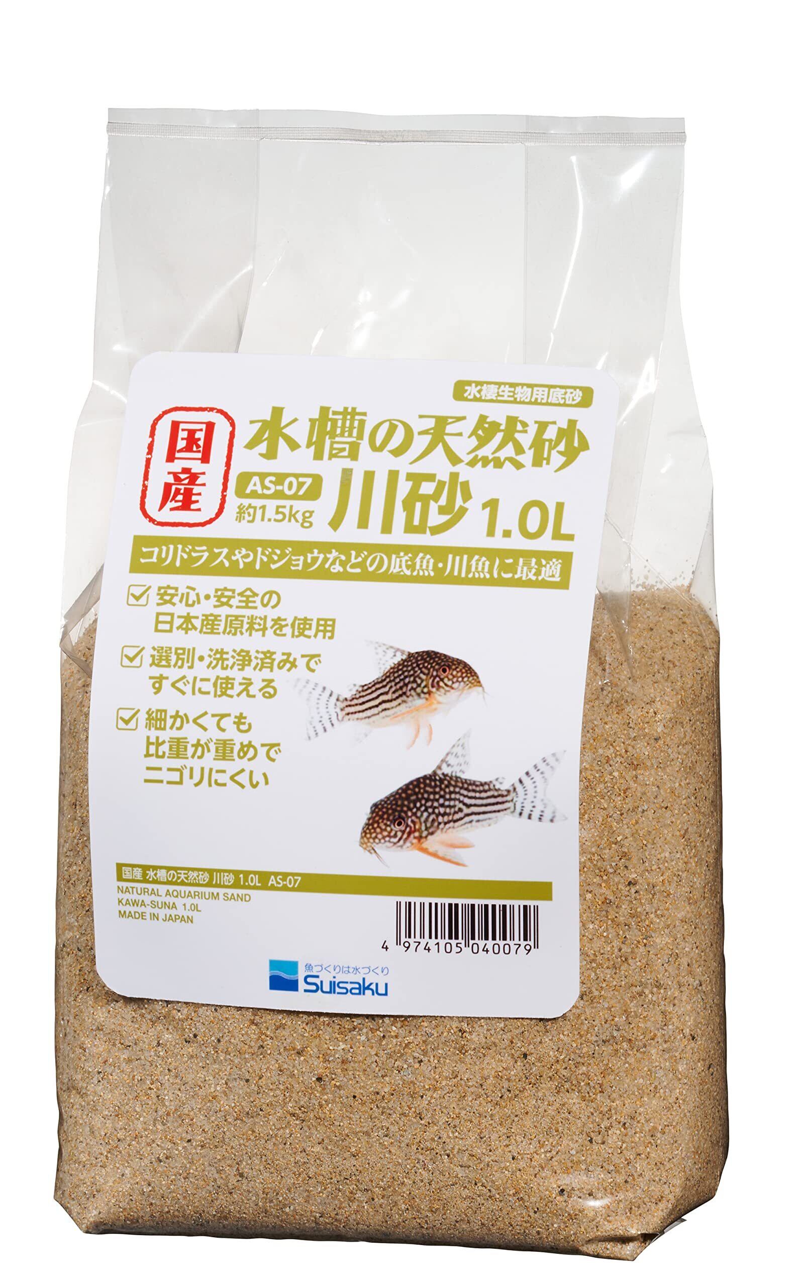 水作 国産 水槽の天然砂 川砂 1.0リットル 細かい粒目でニゴリにくい