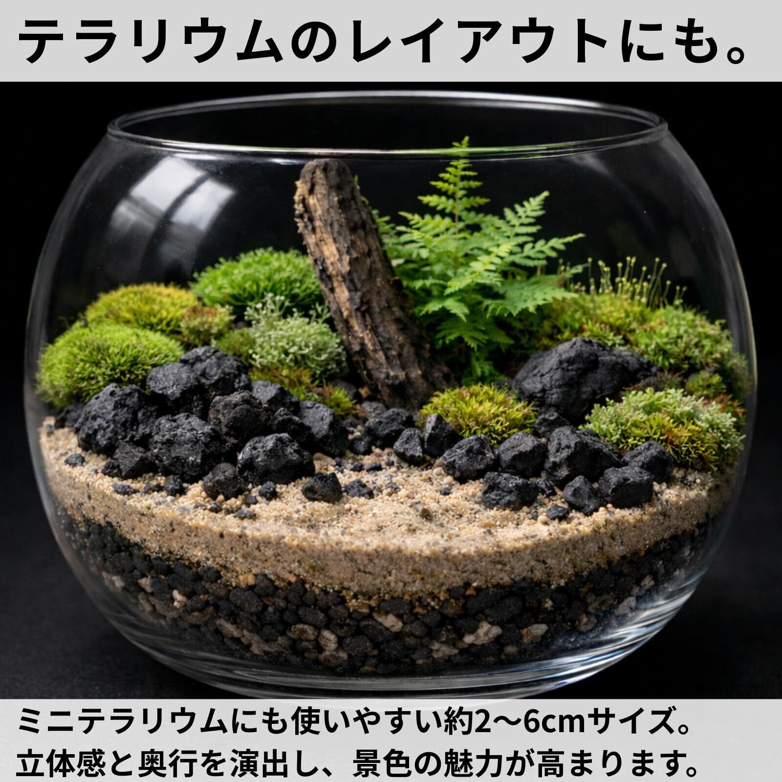 ソイルや砂利と組み合わせやすい底床素材:複数個を組み合わせれば、岩場・小さな洞窟・段差などの地形表現も自在。小型水槽やボトルアクアでもスケール感を崩さず配置できます。