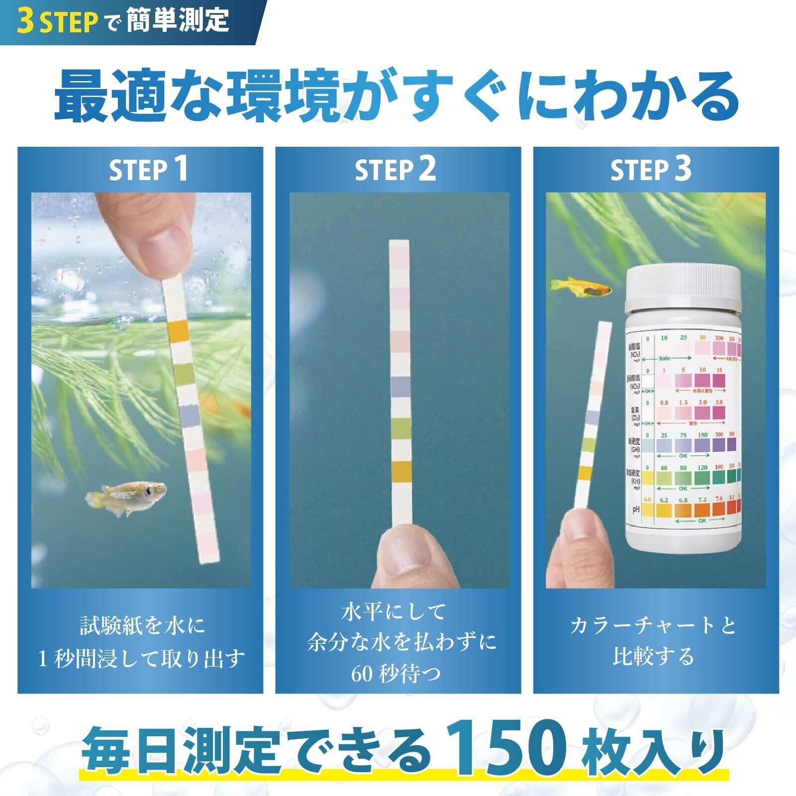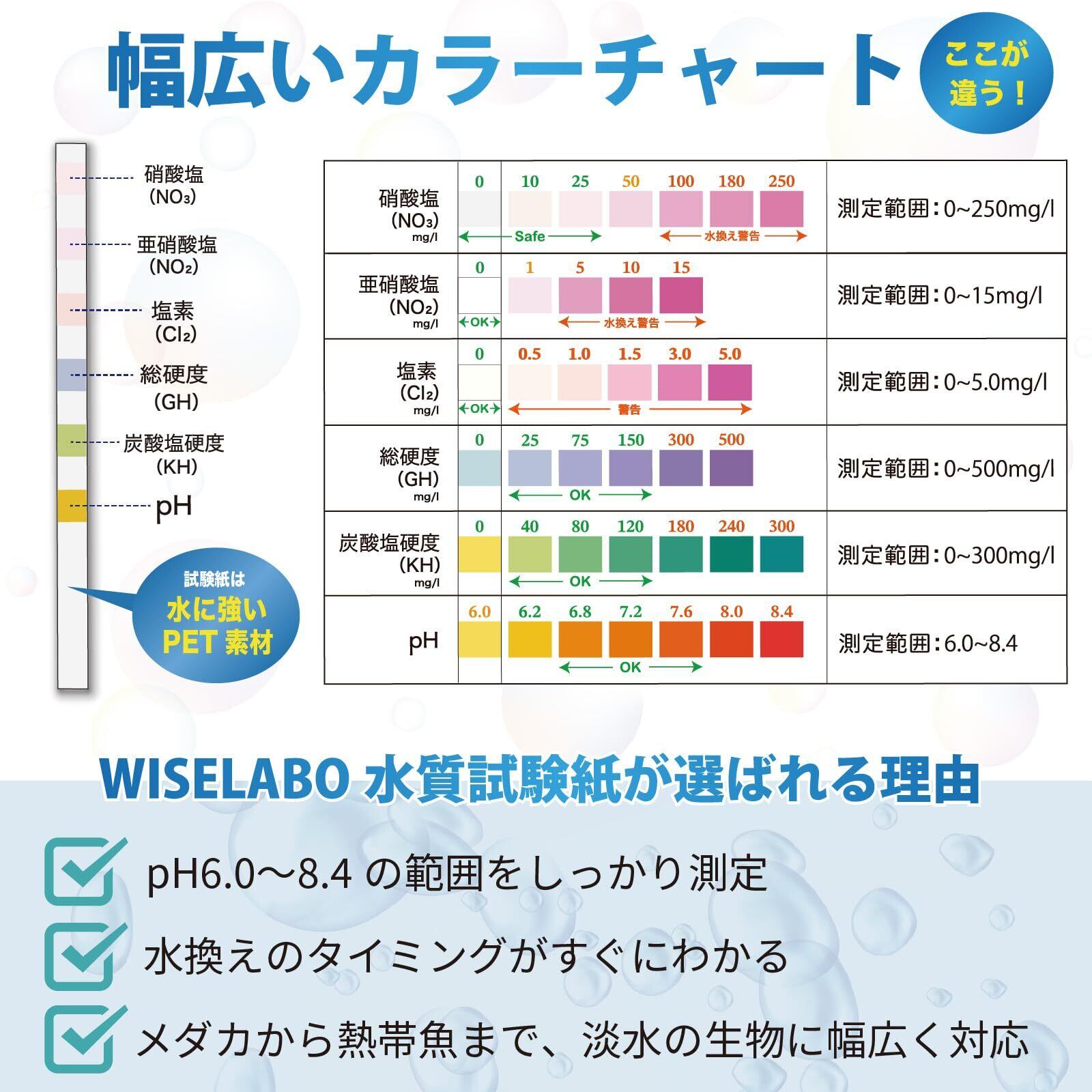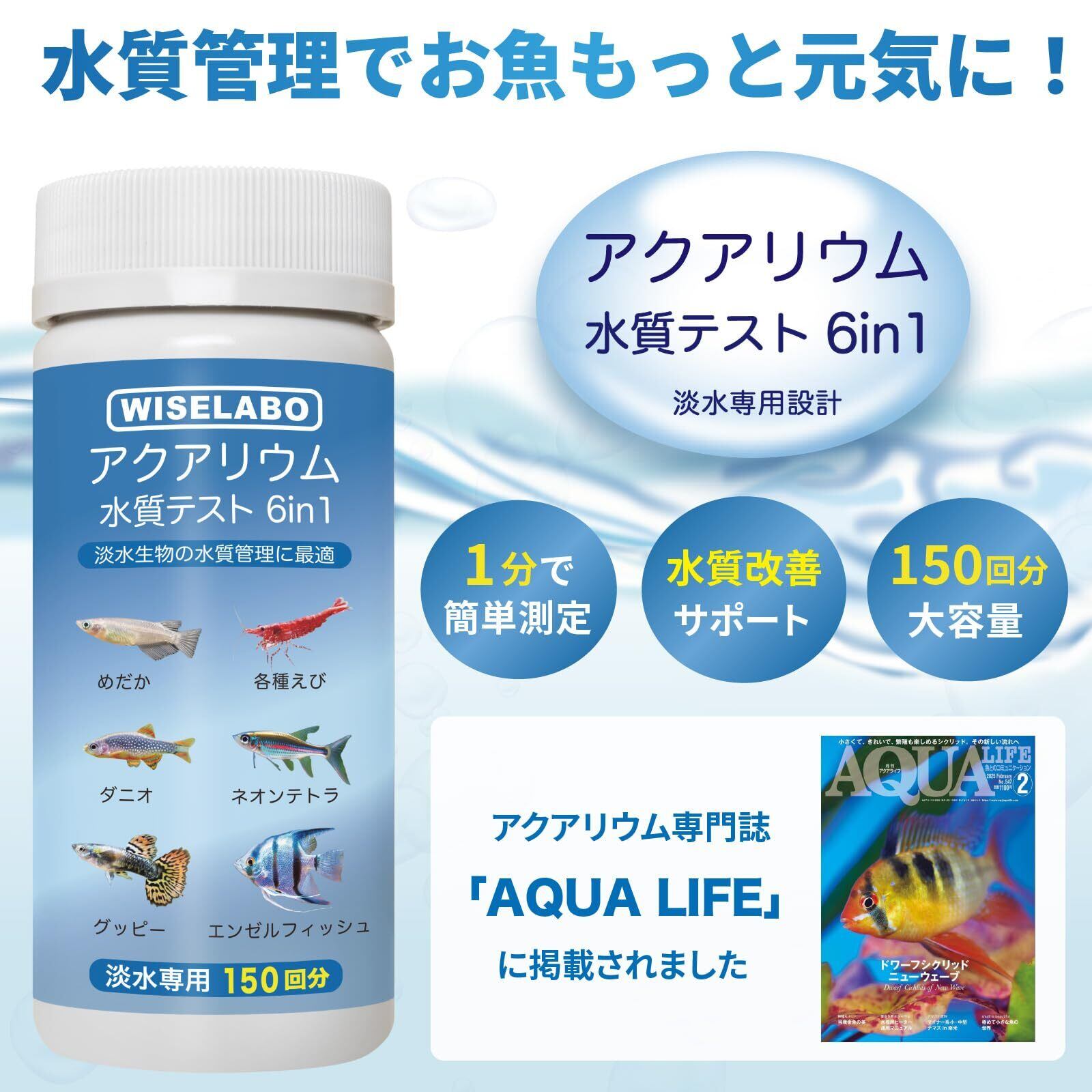 WISELABO アクアリウム 水質テスト 6in1 150回分 【専門誌アクアライフ掲載】水質検査 キット 水槽 試験紙 メダカ 金魚 熱帯魚 淡水専用設計 ワイズラボ