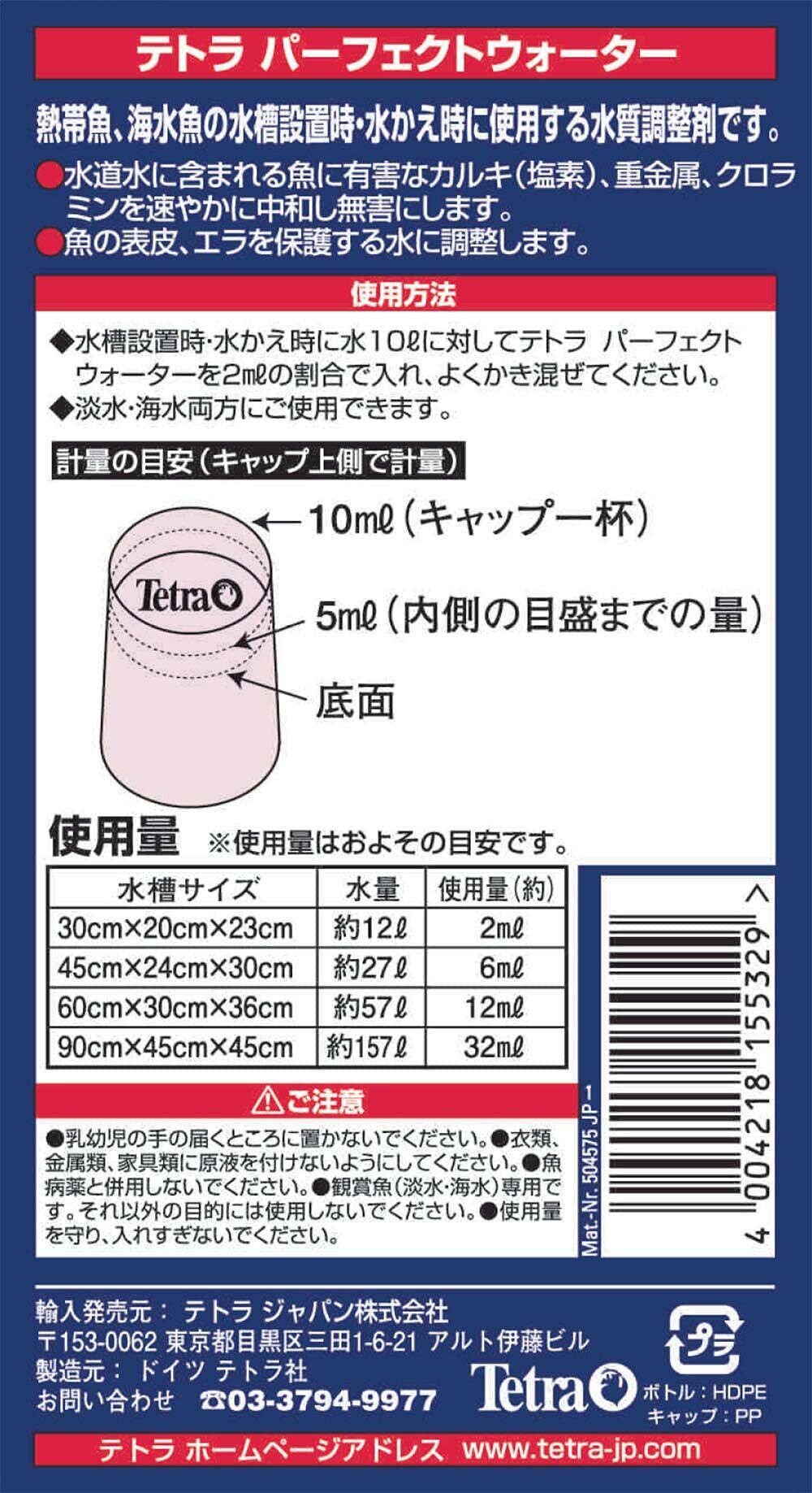 テトラ (Tetra) パーフェクト ウォーター 500ml 水換えにはこれ1本で大丈夫 カルキ抜き 重金属無害化 ろ過バクテリア活性化 ニゴリ除去 粘膜保護