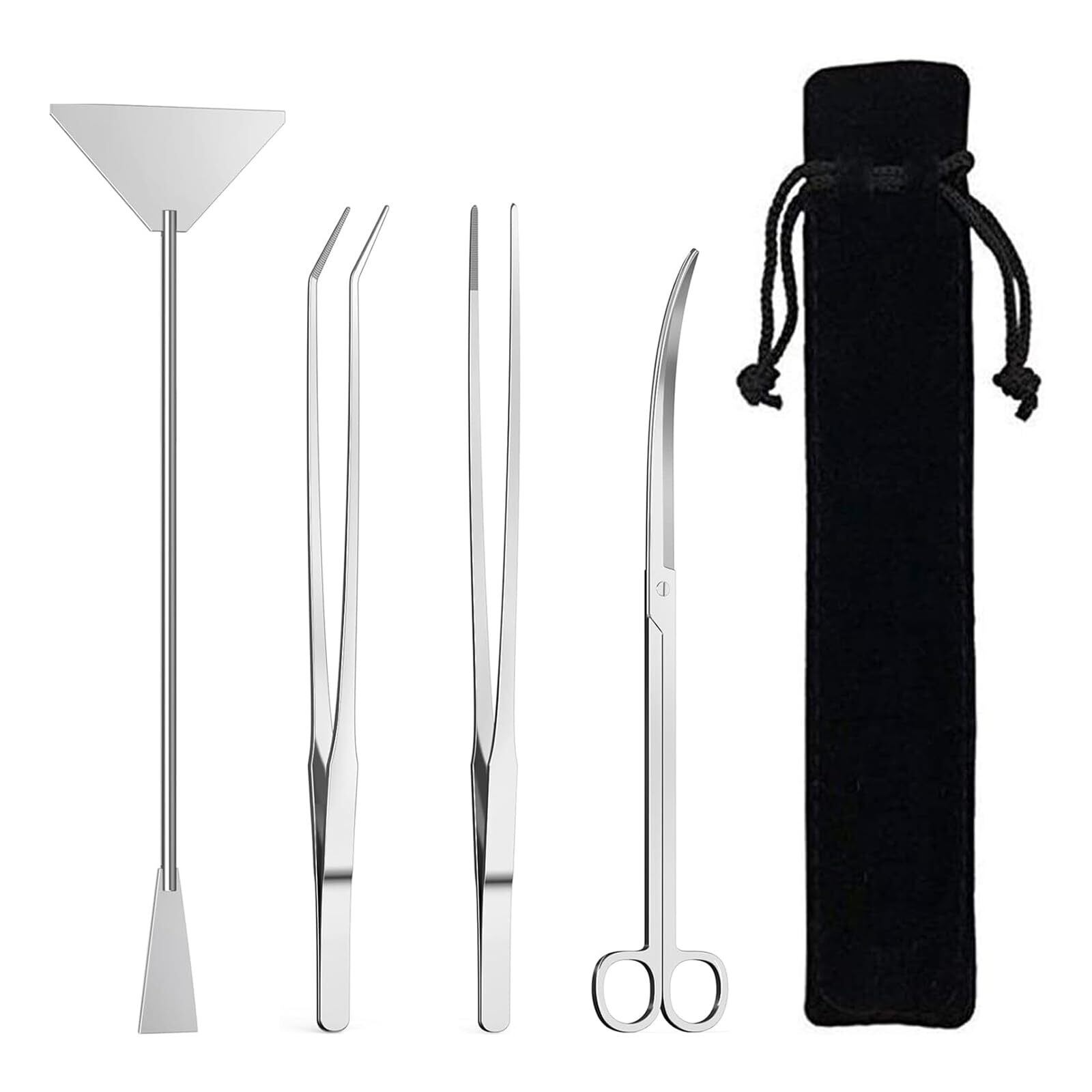 YFFSFDC 水草トリミング 水槽 掃除 水槽セット 4点セット ピンセット ハサミ サンドフラッター ステンレススチール製 実用 便利 多機能 水槽管理 水族館用 収納バッグ付き (4点セット)