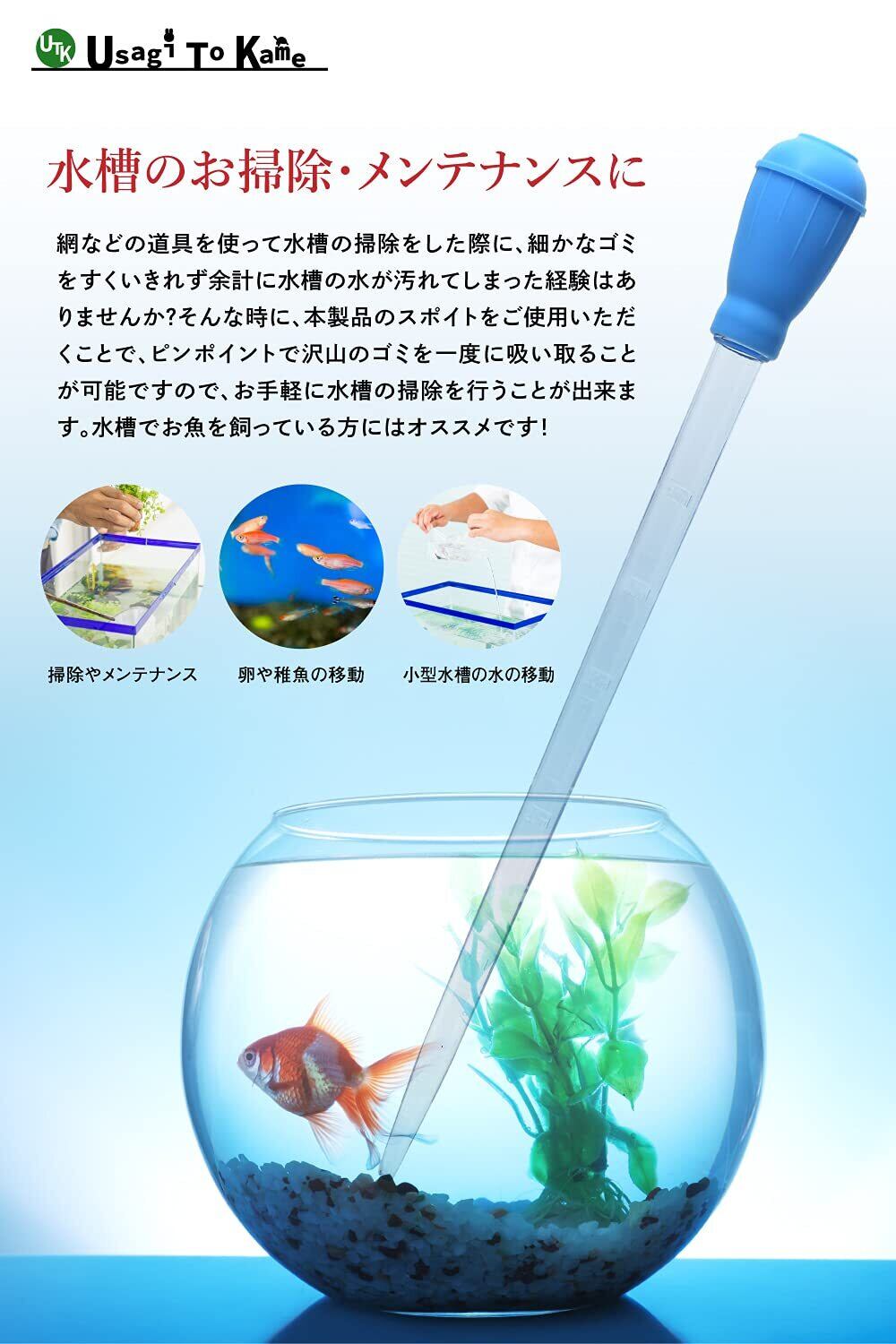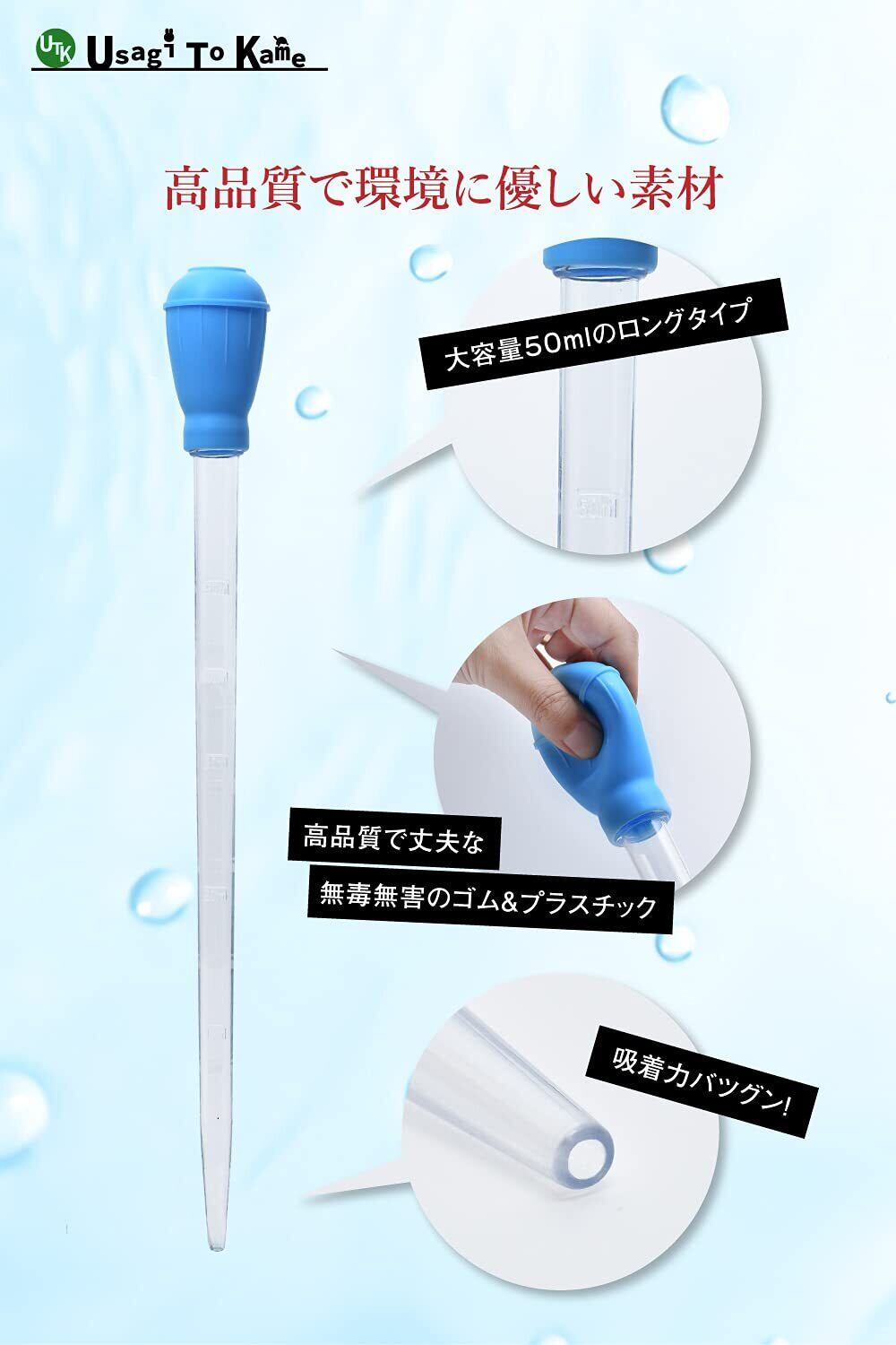 [UTK Usagi To Kame] スポイト 大 ロング 50ml 水深 約35cm 水槽 掃除 クリーナー メダカ 金魚 餌やり 卵 稚魚 移動 水換え