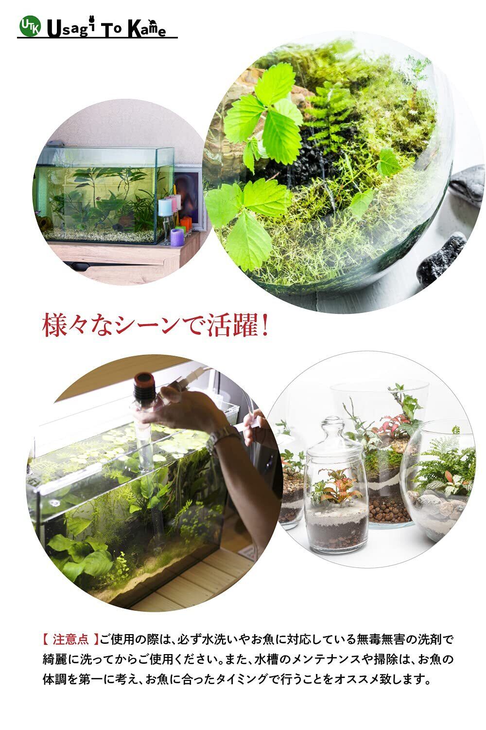 様々なシーンで活躍!水槽のお掃除やメンテナンス、稚魚や卵の移動など、様々なシーンでご使用いただけます。ご使用の際は、必ず水洗いできれいしてからご使用ください。また、水槽のメンテナンスや掃除は、生きものに合ったタイミングで行うことをオススメいたします。