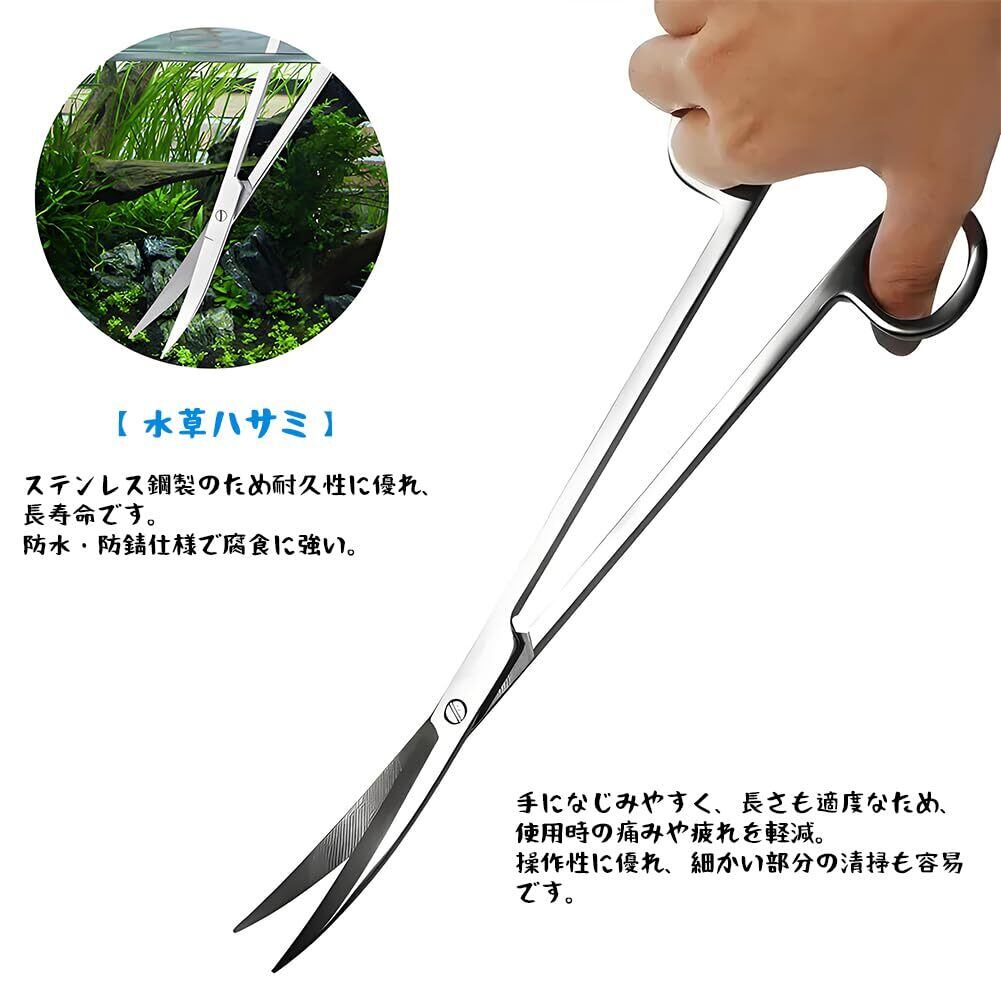 MircTuDou 水草 ハサミ 水草 トリミング アクアリウム オールステンレス 水草用 観葉植物 熱帯魚 盆栽 剪定 メンテナンス 水槽掃除 ステンレス製 全長 25cm