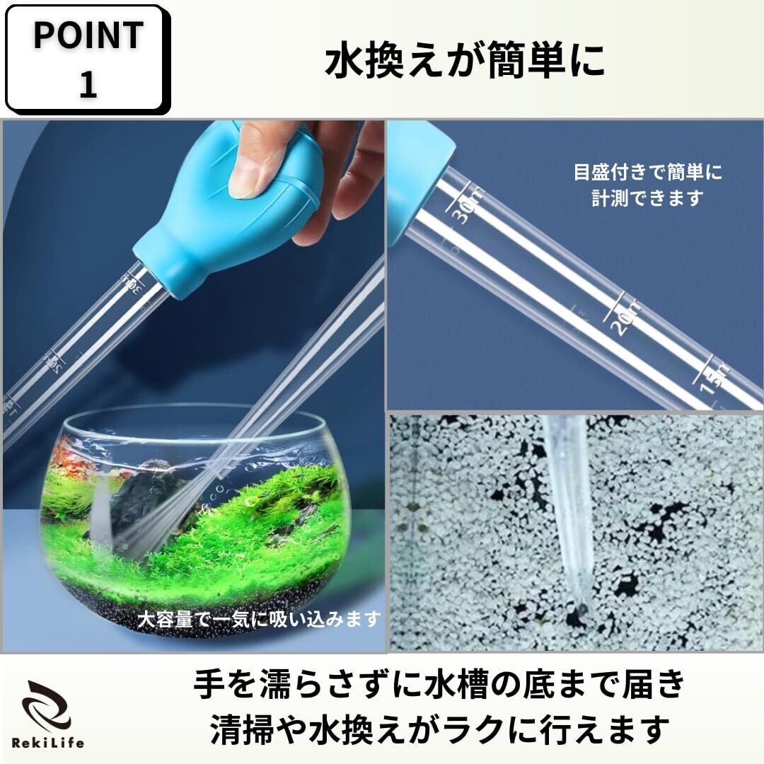 RekiLife スポイト ロングタイプ 水槽 掃除 水換え 餌やり 45cm 容量50ml (ブルー)