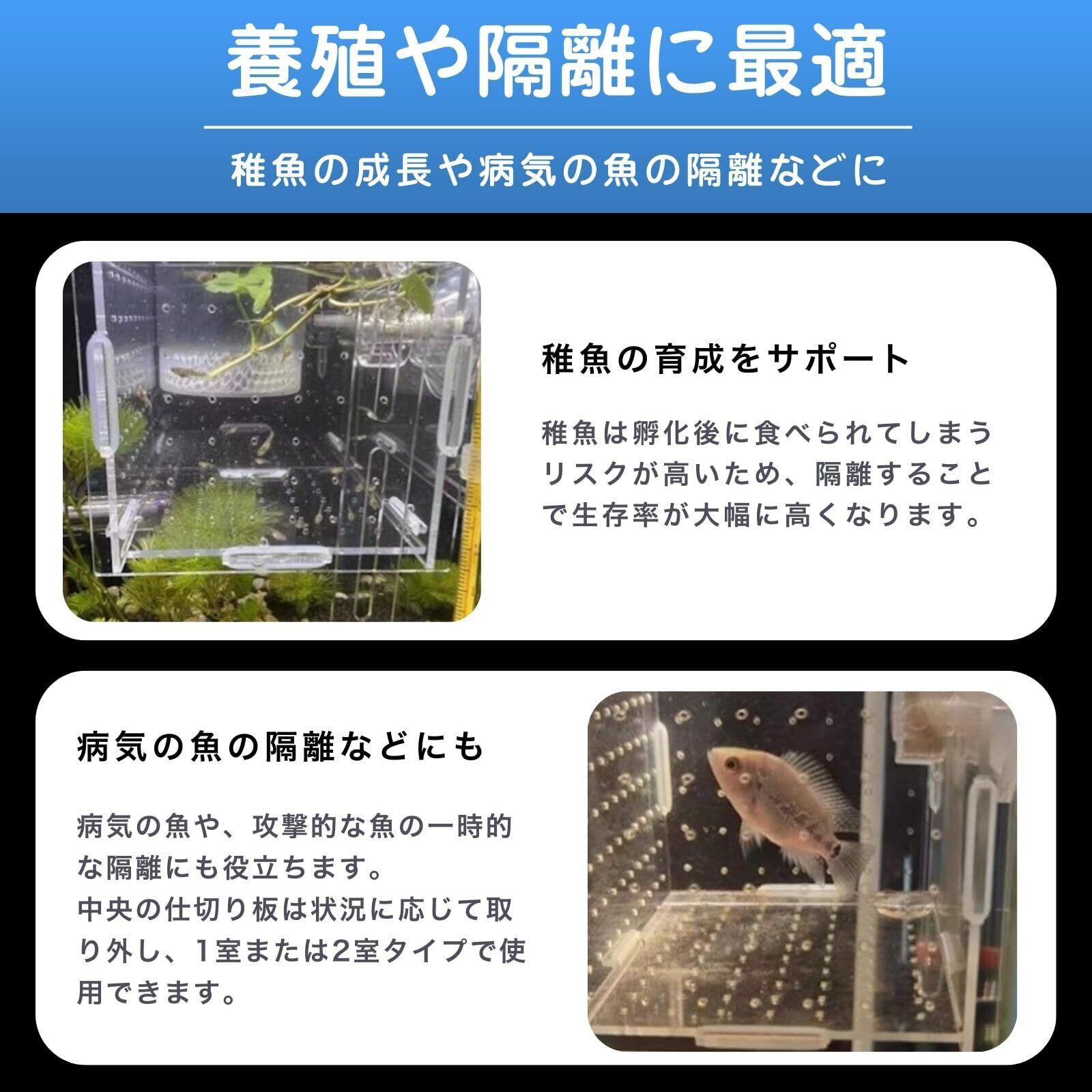 Letics 繁殖 隔離 ボックス 水槽 産卵ケース 稚魚 孵化 メダカ グッピー セパレーター 透明 組み立て式 (20×10×10cm 1室または2室)