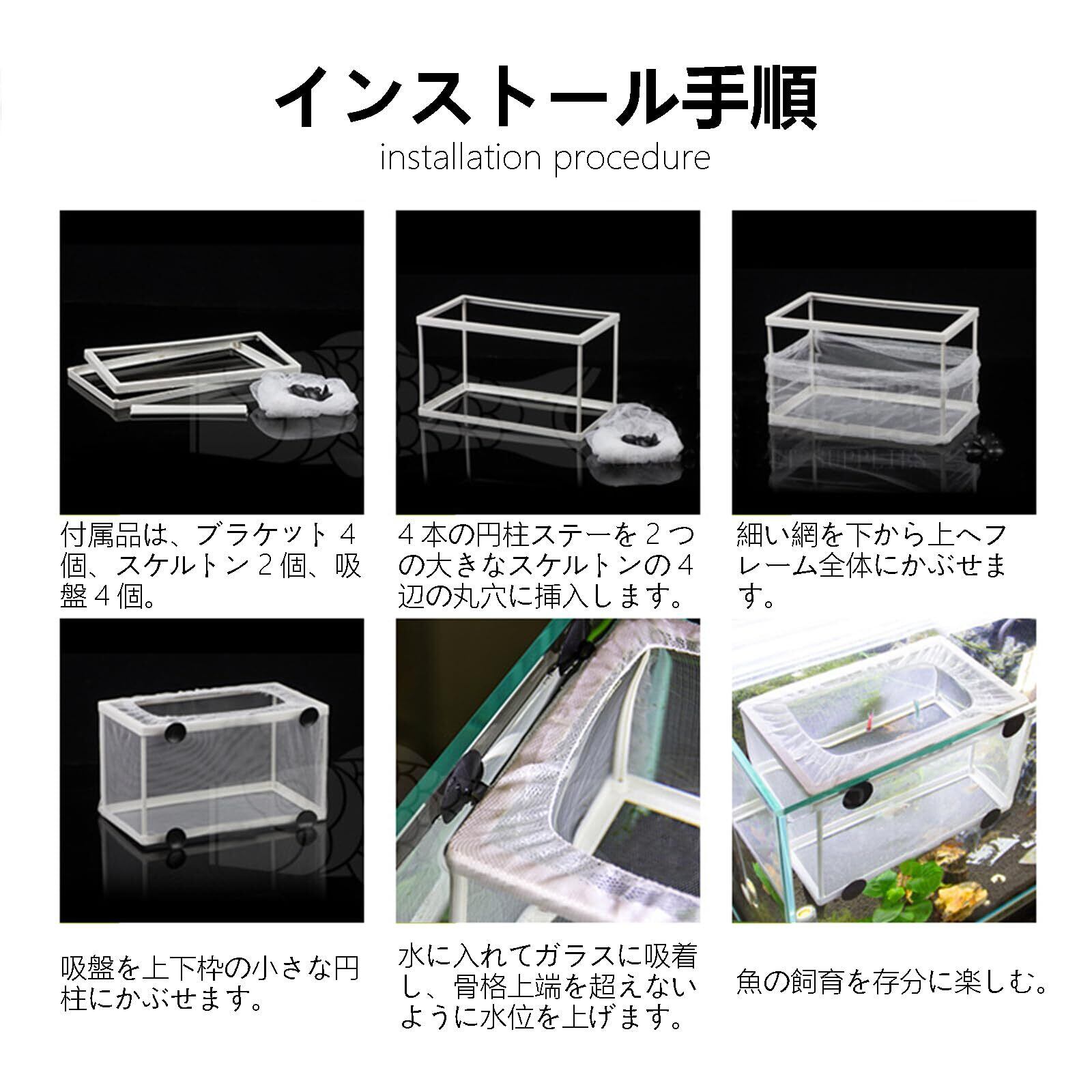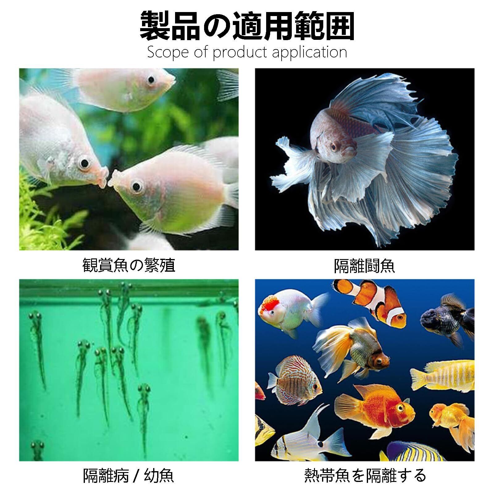 【幅広い用途】養殖、隔離、繁殖三つの機能があります。卵生魚のための産卵ボックスとして使用できます。稚魚たちに新しい部屋を作って、快適な環境を提供します。稚魚の生存率を改善し、成魚からの攻撃を防ぐことができます。