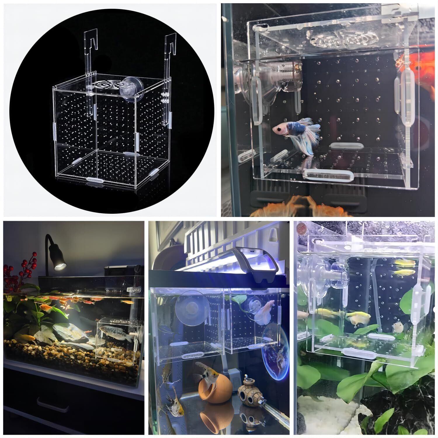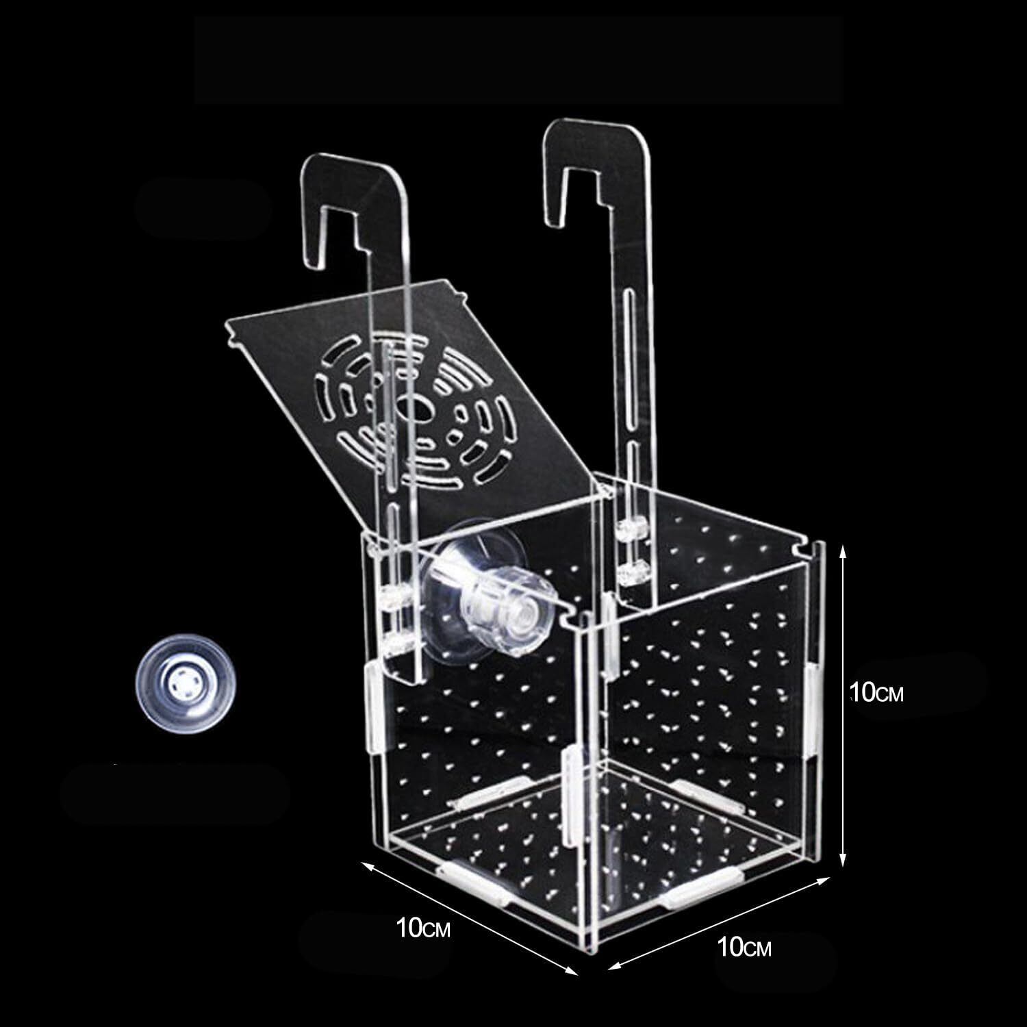Cluoling 魚 繁殖隔離ボックス 稚魚 繁殖隔離ボックス 水槽 隔離ケース 産卵ケース 孵化 産卵箱 魚の隔離 水族館アクセサリー 透明 アクリル (10x10x10cm)
