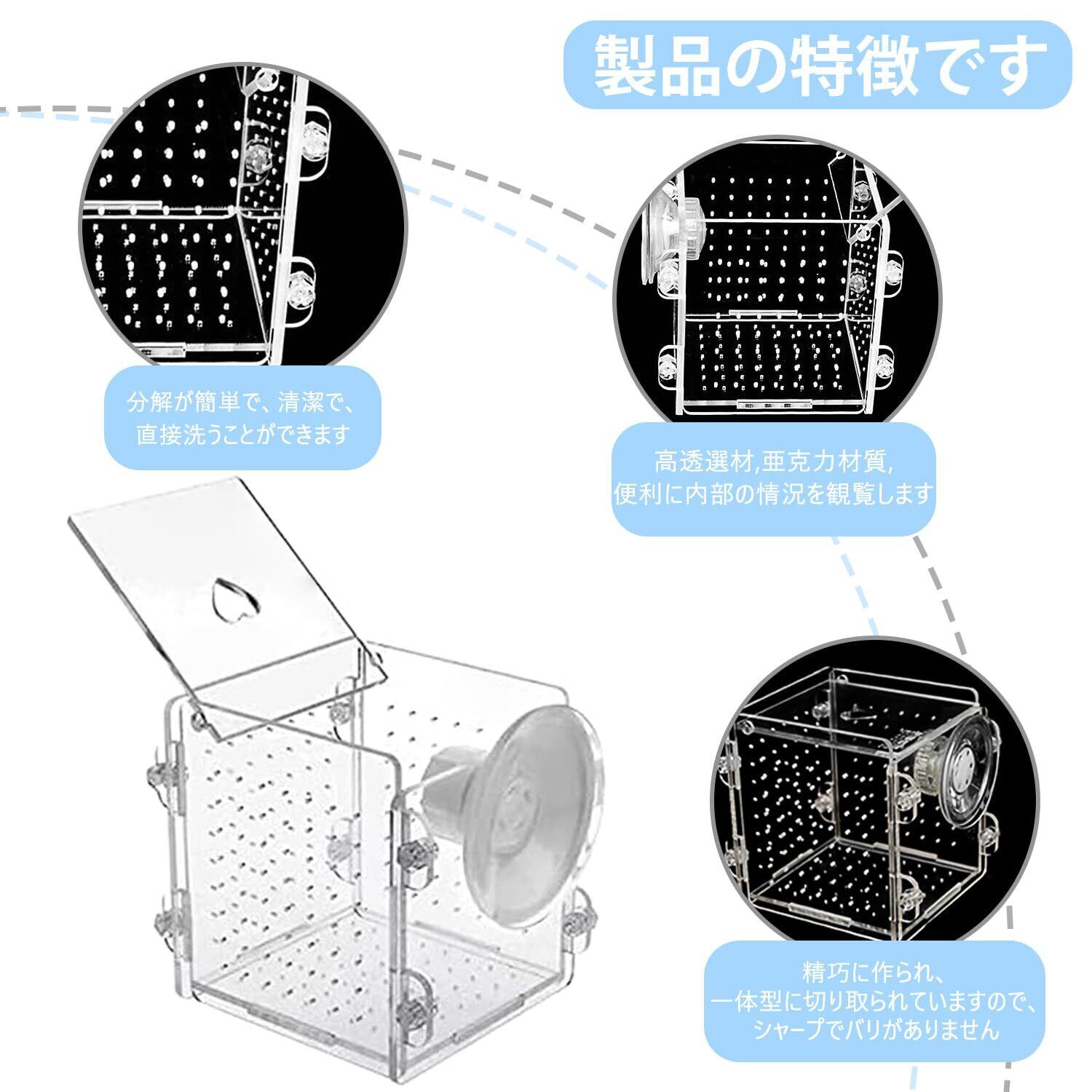 PAVIKE 稚魚 隔離ケース 水槽 隔離ケース 【8x8x8.8cm】多機能 透明 アクリル 省スペース 取り付け簡単 水槽 鱼缸 メダカ グッピー 産卵箱 産卵ケース 水槽 隔離 繁殖隔離ボックス 吸盤付き