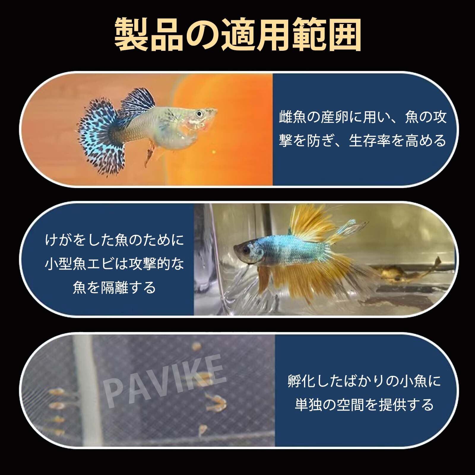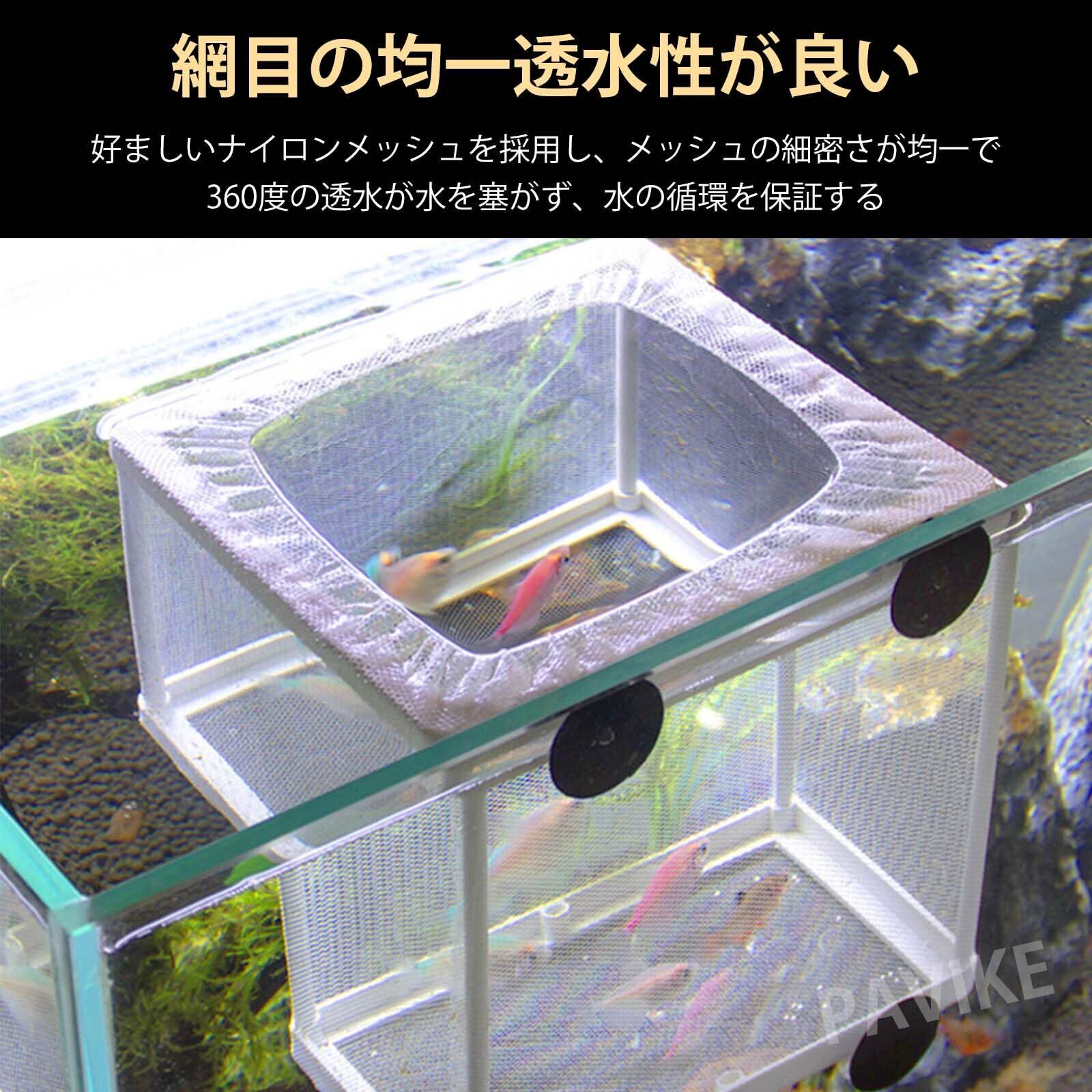 PAVIKE水槽隔離ケース【约16*15*14cm】魚 繁殖隔離ボックス 稚魚隔離ケース 産卵ケース 水槽 懸濁式保護小魚、吸盤付き、水槽孵化用品、幼魚、孔雀魚、小さな稚魚などに適し