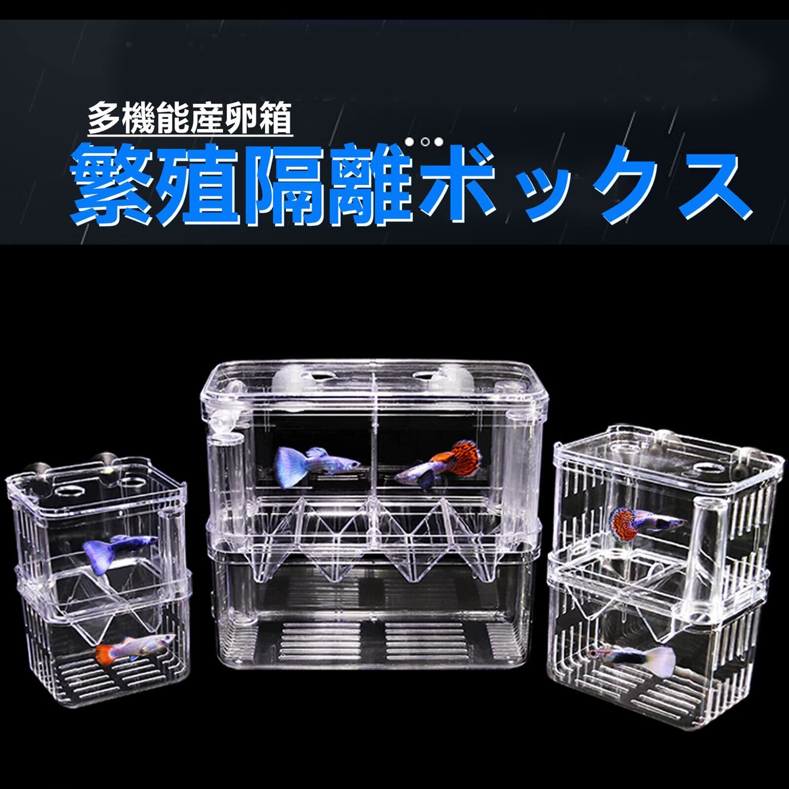 Hitasi 繁殖隔離ボックス 産卵ケース 透明 魚 飼育 水槽 魚卵 孵化 安全 大容量 2段式 エビメダカ孵化産卵箱 多機能 グッピー 稚魚 隔離 飼育保護 水族館アクセサリー 取り付け簡単 S