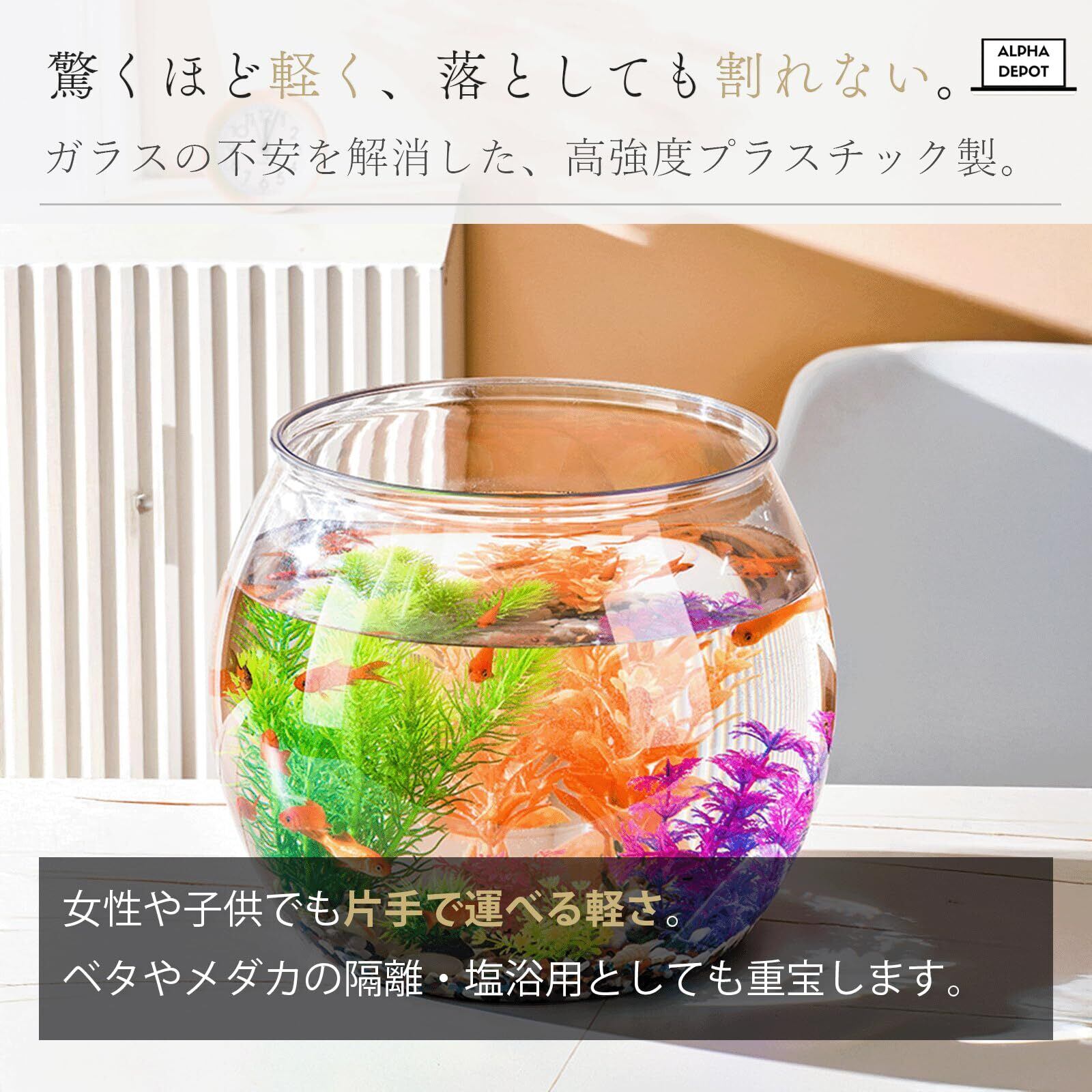 Alpha Depot 金魚鉢 プラスチック 水槽 メダカ 飼育 プラスチック アクアリウム (L)