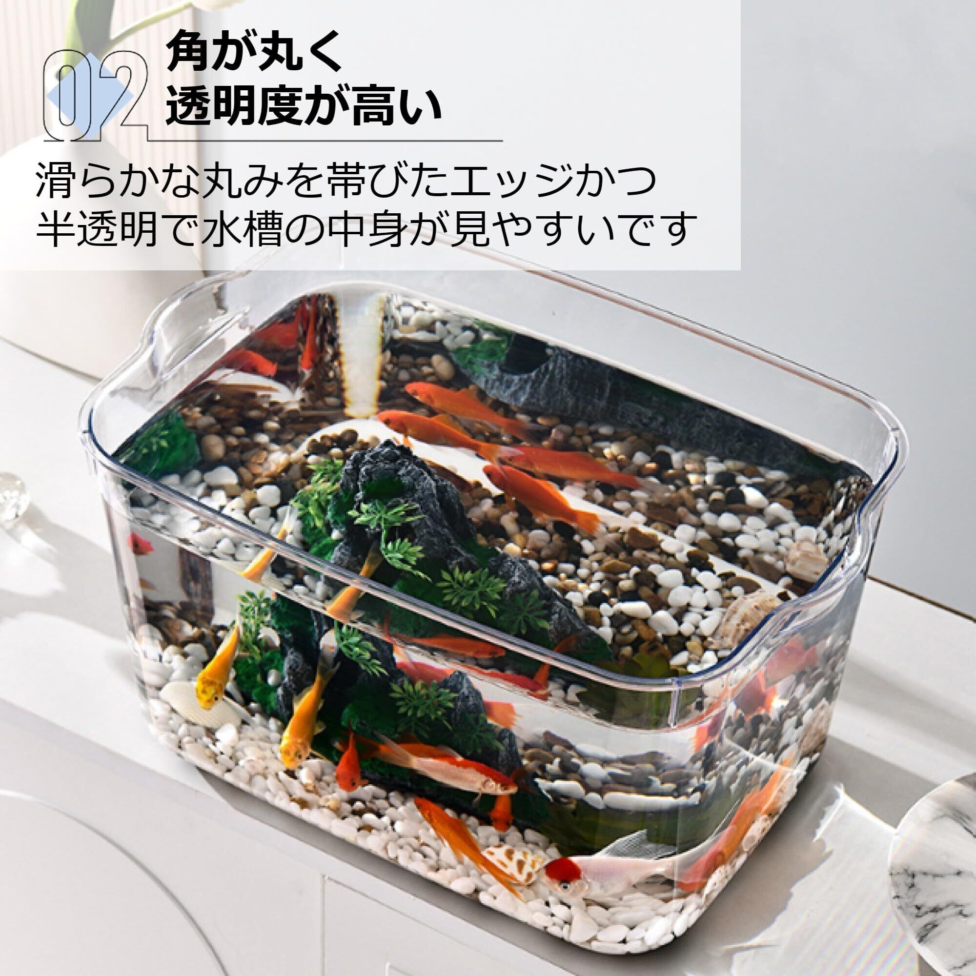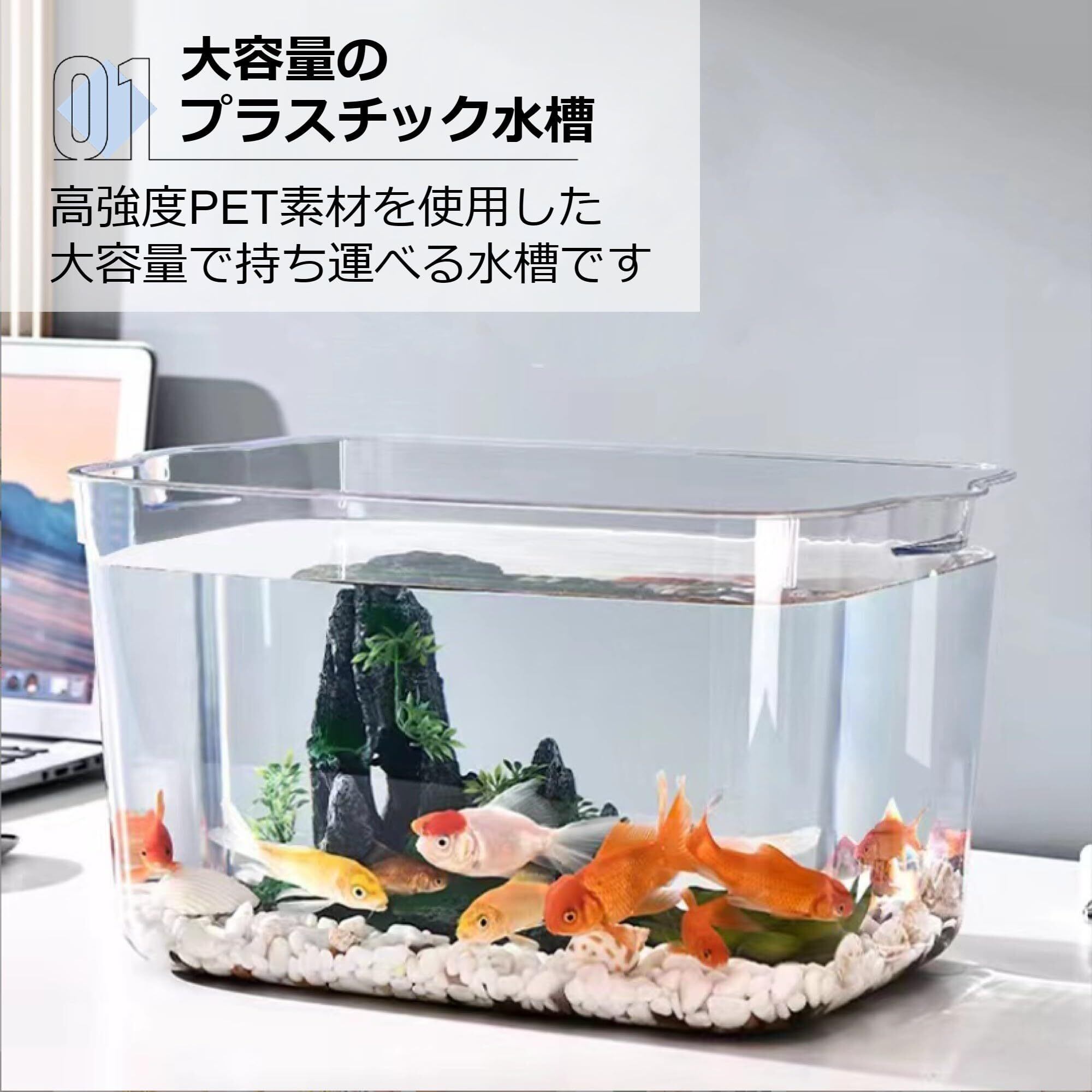 【大容量のプラスチック水槽】高強度PET素材を使用した大容量で持ち運べる水槽です。メダカや金魚、エビなど水生生物の観賞用にご使用ください