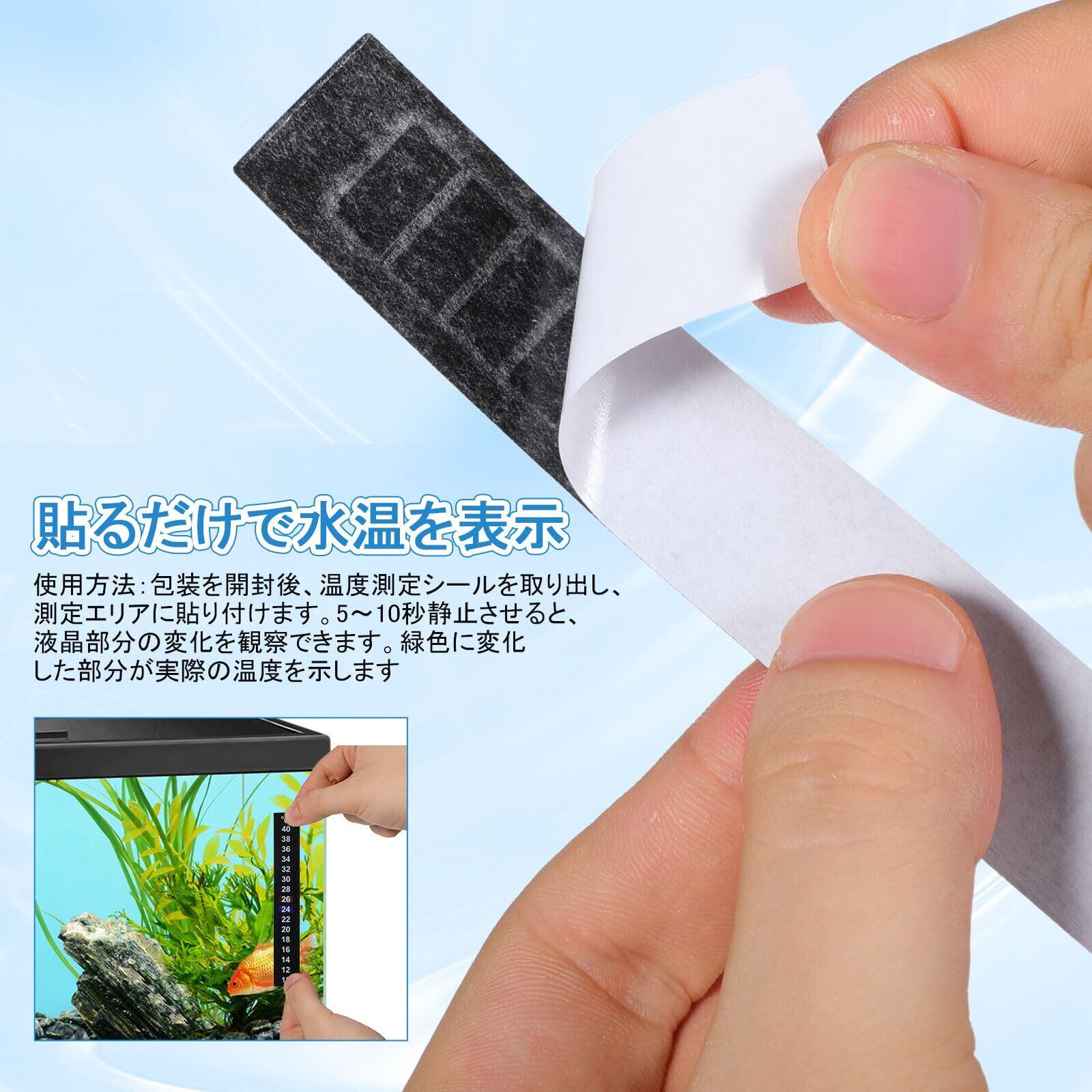 【粘着式】薄型シール式で水槽の外側に簡単に貼り付け可能。変形しにくく耐久性に優れ、繰り返し使用できます。