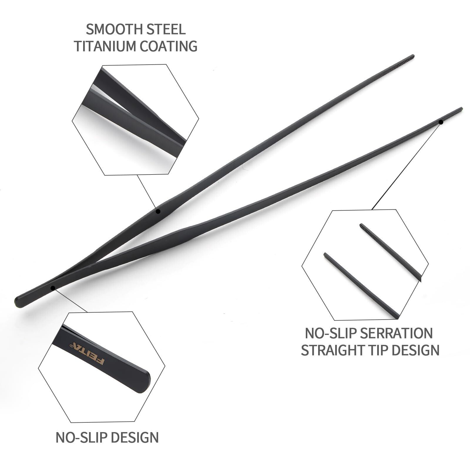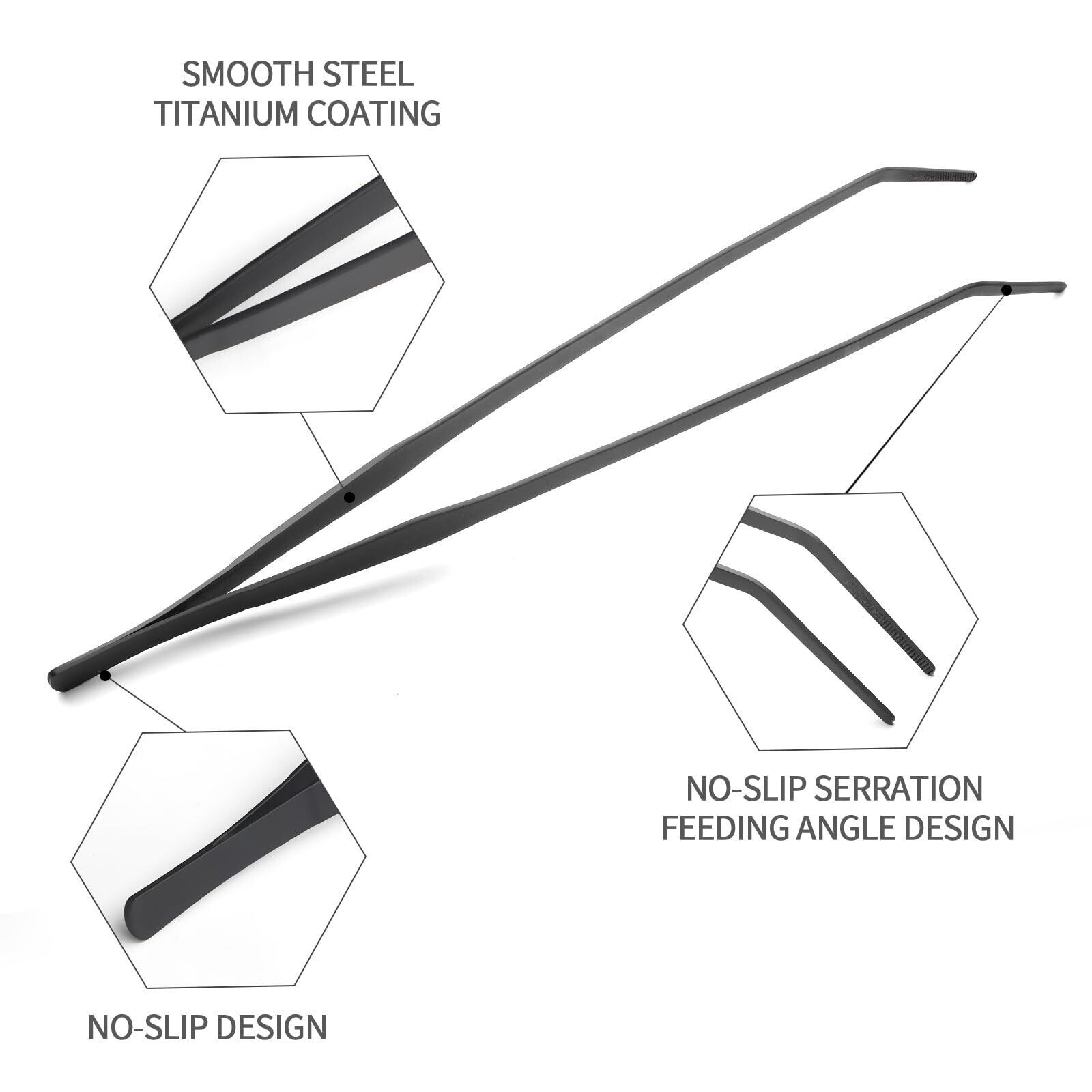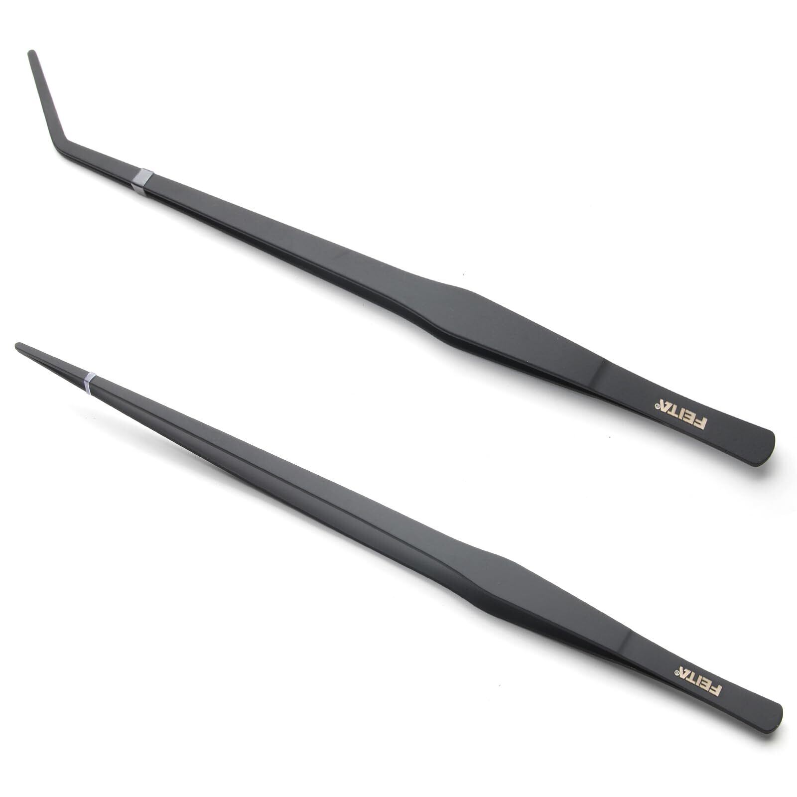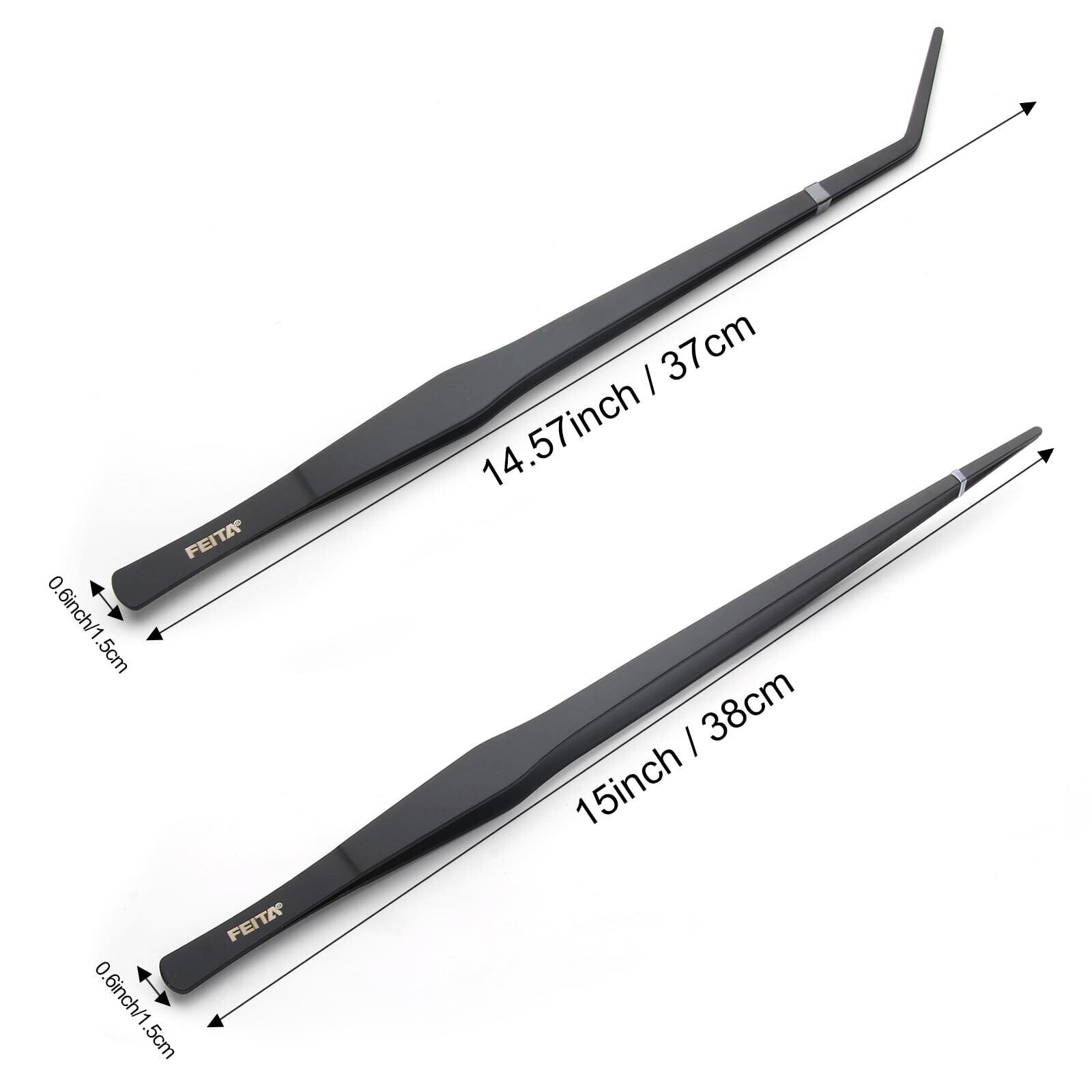 FEITA 水族館ピンセット エクストラロング 15インチ フィードトングクランプ - ストレート&カーブステンレススチール 38cm ピンセットセット 水槽 植物 アクアスケープツール 爬虫類の餌やりトング - ブラック 2個