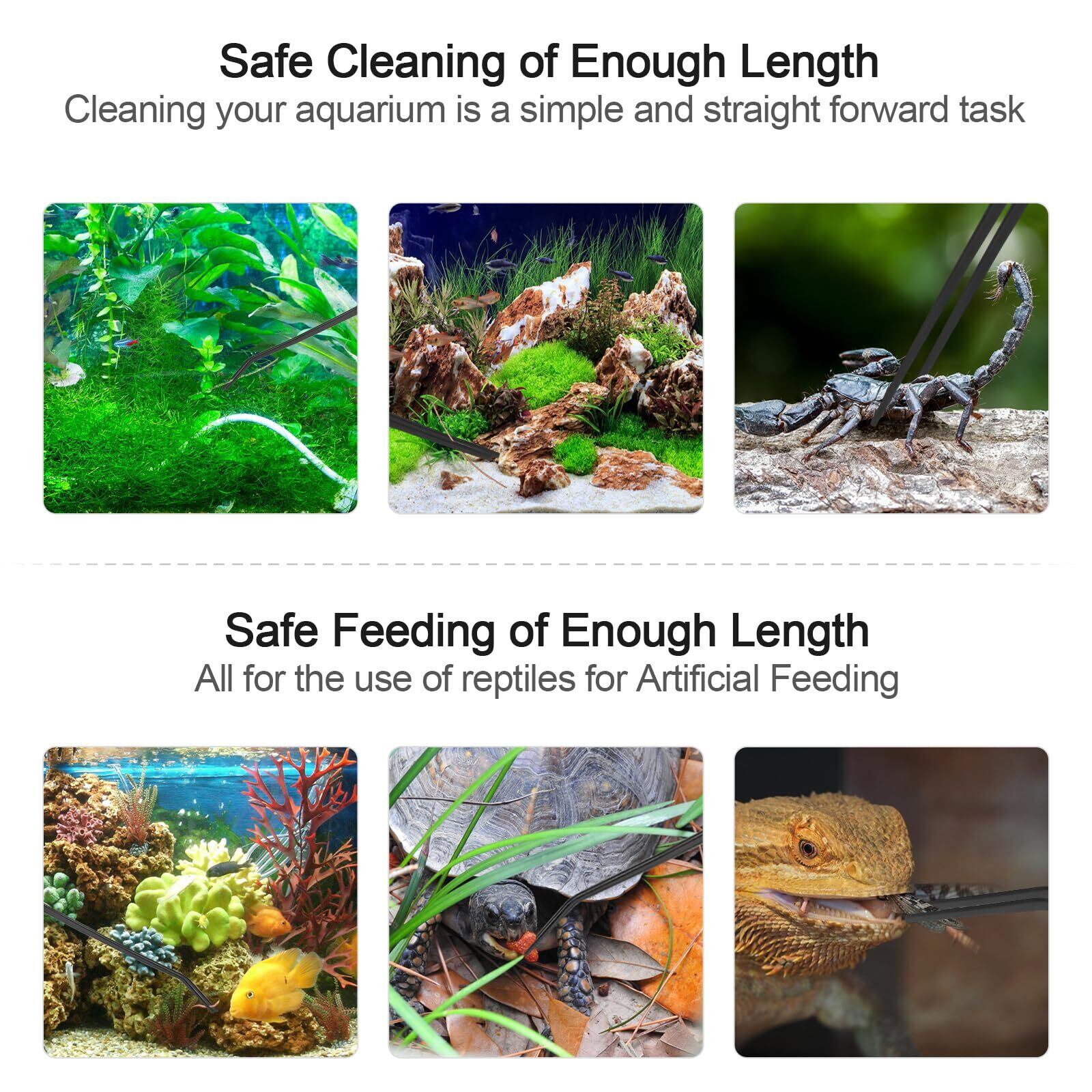 安全でフレンドリーなフィードトング - タンクに長い蛇の餌やりトングが噛まれる可能性からあなたを守ります。隆起したハンドルは指に安全で快適なグリップを提供し、最適な給餌角度のための斜めの先端、鋸歯状の爪、滑り止めクリップエンドは食べ物が落ちるのを防ぎます。