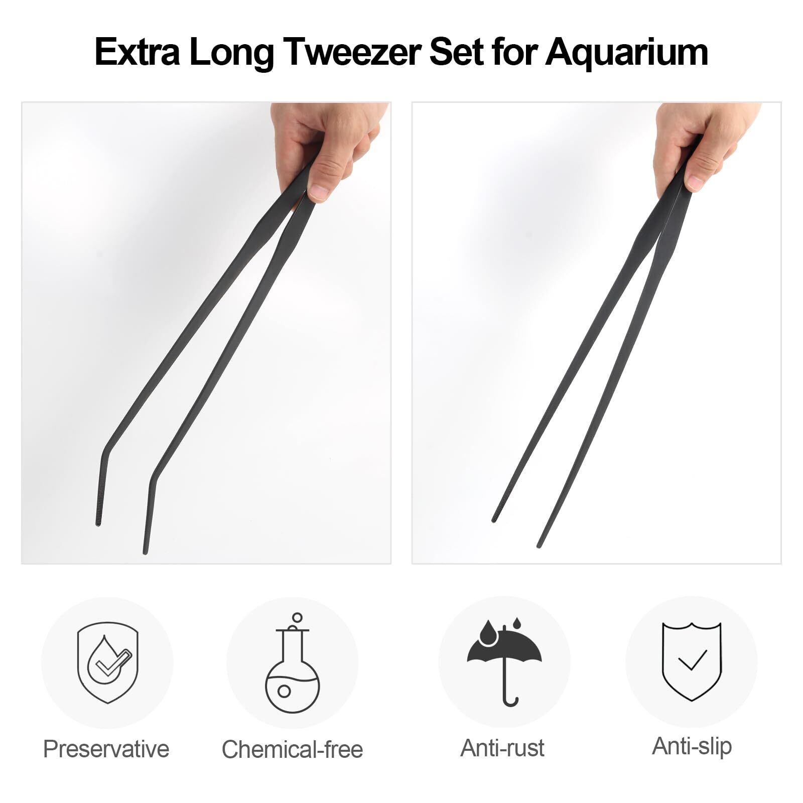 最高のアクアリウムツイザー - 優れた柔軟性と防錆チタンコーティングを施した鍛造ステンレススチール。水槽用のこの15インチのエクストラロングピンセットは、水槽用余分な長さのピンセットは、水生植物の偶発的な怪我を防ぎ、水槽全体にゴミを運びます。