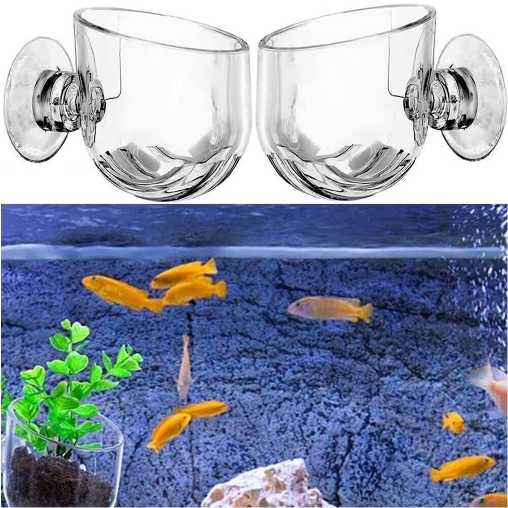 Fabselection 水族館の植物カップ 2個セット アクリル水槽水草カップ 水槽鉢 水草ポット 水生植物 ポット 餌やり器 壁掛け水槽 飾り