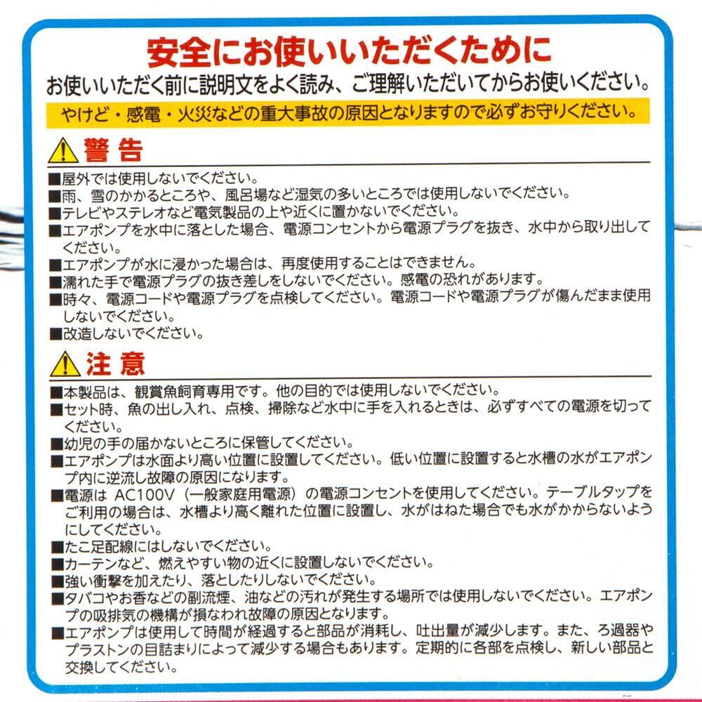 本製品は屋内観賞魚飼育専用です。他の目的には使用しないでください。