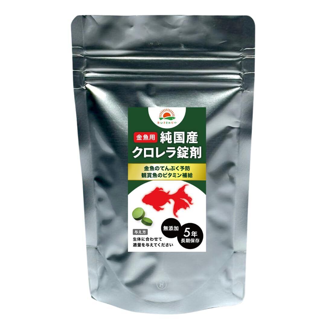 【純国産クロレラ100%使用】安心の日本製品質 国内で培養・製造された高品質クロレラのみを使用。添加物不使用で、繊細な観賞魚にも安心して与えられる純国産サプリメントです。長期5年保存(未開封)。