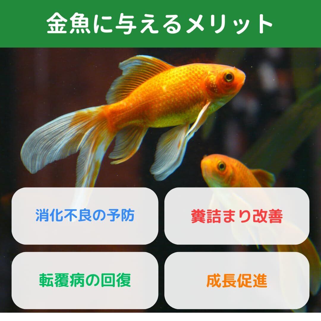 優れた整腸効果 便秘や糞づまり、転覆病の予防・改善に役立ち、特に金魚やプレコなど消化器の弱い魚に最適。