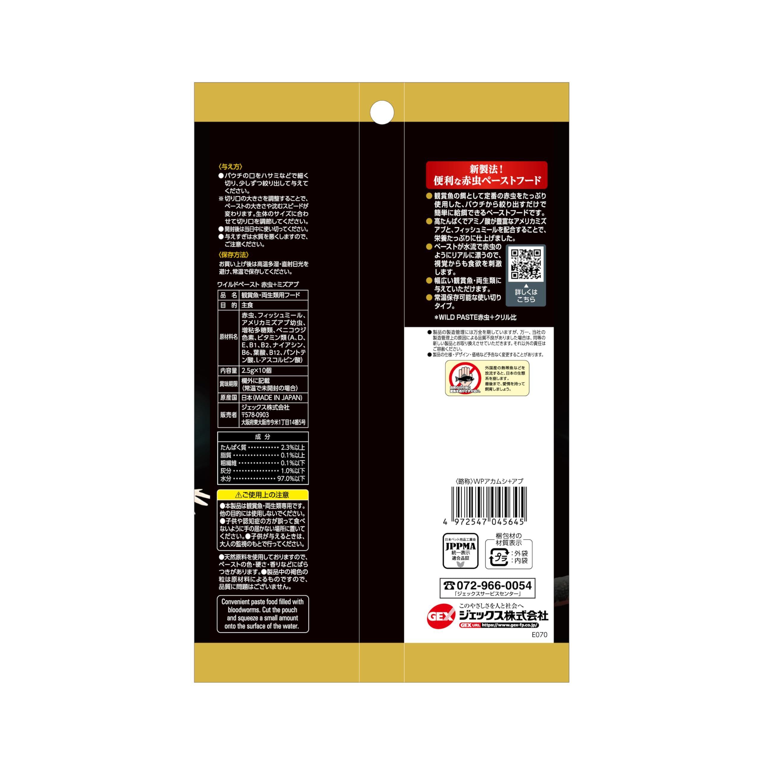 ジェックス GEX ワイルドペースト 赤虫+ミズアブ 10袋入 常温保存 与えやすく食べやすいペースト アミノ酸たっぷりのアメリカミズアブ&赤虫強化配合 金魚・グッピーなどの小型魚 ウーパールーパー・アカハライモリなどの両生類 使いきりサイズ 2.5g×10袋入