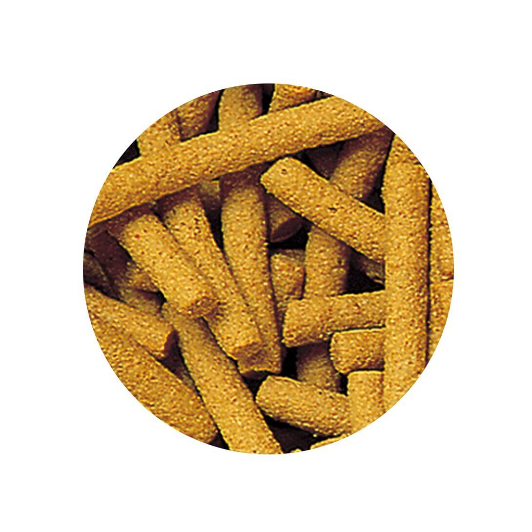 中・大型熱帯魚の植物質補給用に開発されたスティックタイプの浮上性フードです。
