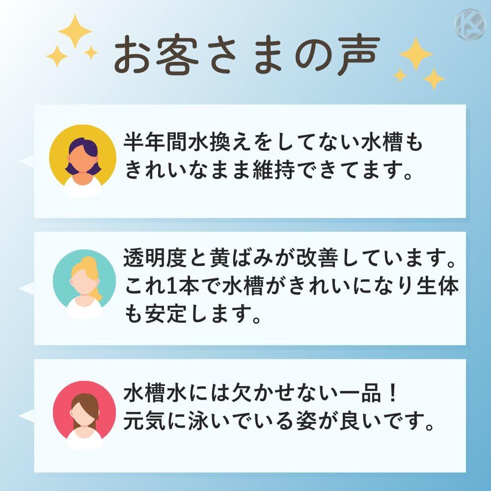すごいんです善玉菌は観賞魚用品です。 ボトルをよく振ってご使用ください ろ過器を使用した環境でご使用ください。 水槽に直射日光や強い照明があたると善玉菌が活発になり緑色の藻状物質が出ることがありますが害はありません。 本品を直射日光が当たる場所に保管するとボトル内に藻状物質がでることがありますが効果に問題はありません。 pH値などの水質を大きく変化させることはありません。 海水にご使用の場合は入れすぎると比重が変わる場合がありますのでご注意ください。 直射日光を避け、使用後はしっかりとふたを閉めて保管してください。 魚病薬等と併用は避けてください。 食用ではありません。誤飲に注意し、お子様の手の届かない所に置いてください。