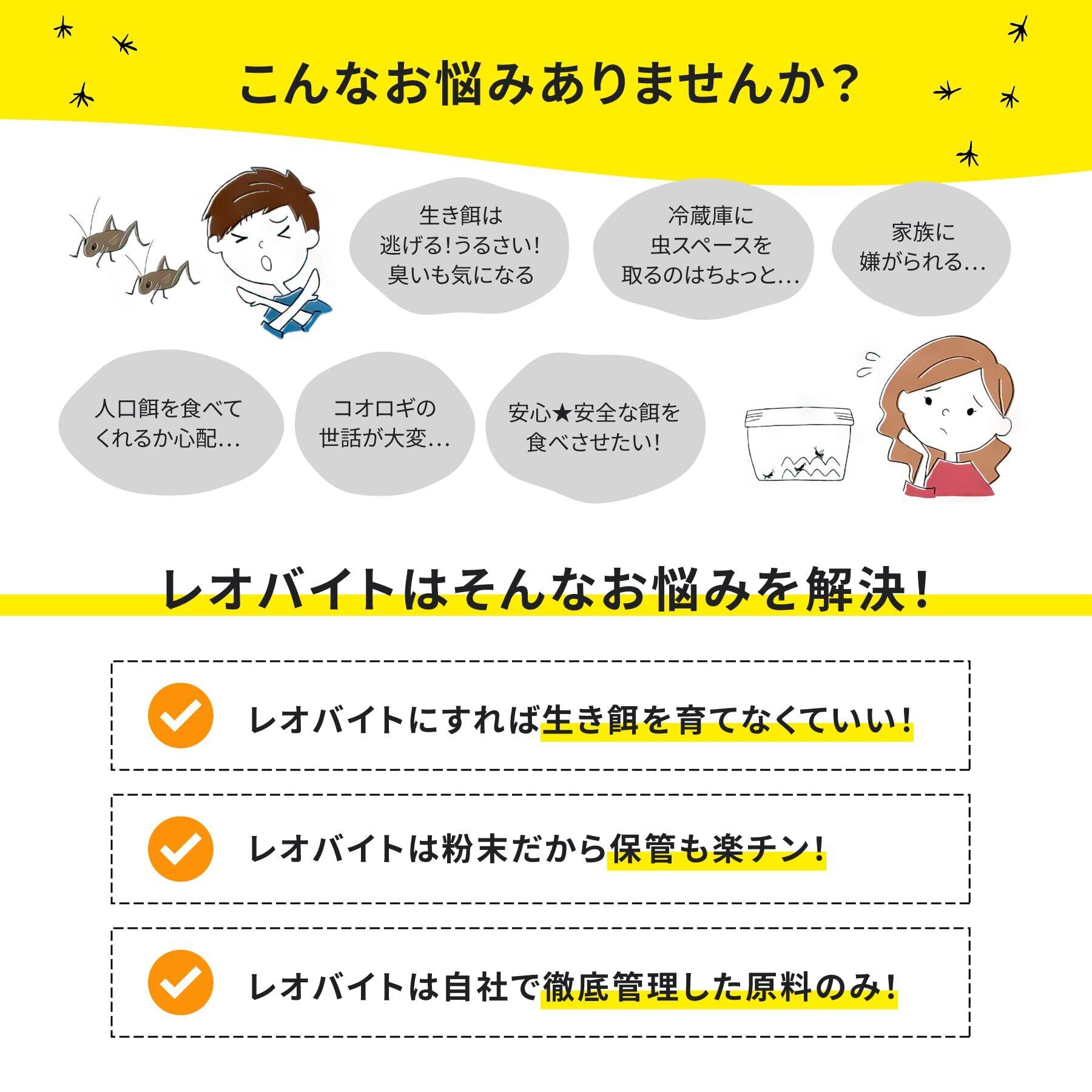 【レオバイト】 50g レオパードゲッコー(ヒョウモントカゲモドキ) 爬虫類向け人工フード コオロギ粉末95%だから食いつき◎ 虫以外の人工餌に