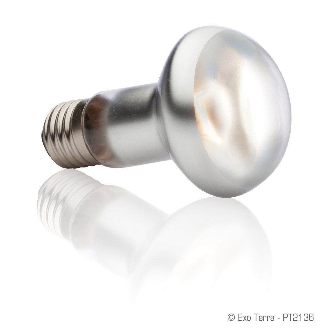 光を集中的に照射! 強力な光を狙った場所に集中照射! 砂漠・熱帯環境テラリウム用の昼用集光型タイトビームスポットランプです。 昼間の強い太陽光をイメージした明るい光を狭い範囲に集中的に照射することで、爬虫類の為のバスキングエリアを作ります。 昼夜のサイクルを飼育爬虫類に作るために、エキゾテラ「ナイトグロー」「ヒートグロー」と組み合わせて使用することをおすすめします。 リクガメ類、トカゲ類に最適。 植物の育成にも理想的な光を照射します。 爬虫類用点灯器具に取り付けて使用する、E26口金のついた爬虫類用ランプです。必ず爬虫類飼育専用の照射器具に取り付けてご使用ください。 ※ランプの寿命は約1500~2000時間です。4~6ヶ月を目安に交換してください。点灯・消灯を頻繁に繰り返す環境では、ランプ寿命が短くなりますのでご注意ください。 ※ケージ内全体の温度が上がりすぎないように、シェルターなどを設置し、生体が体温調節できるようにしてください。 製品サイズ:約φ6.5×10cm 口金:E26 ※ランプの破損などの原因になりますので、水滴や霧吹きの水が絶対にかからないようにしてください。生体やディスプレイ、飼育ケージ(プラスチックフレーム、ガラス)などに直接触れないように設置してください。ヤケドや変形、火災の原因になります。