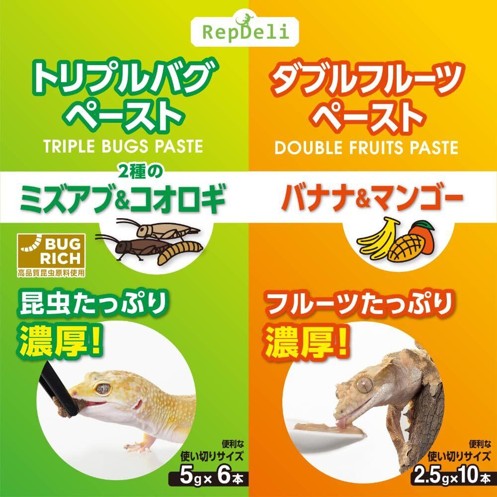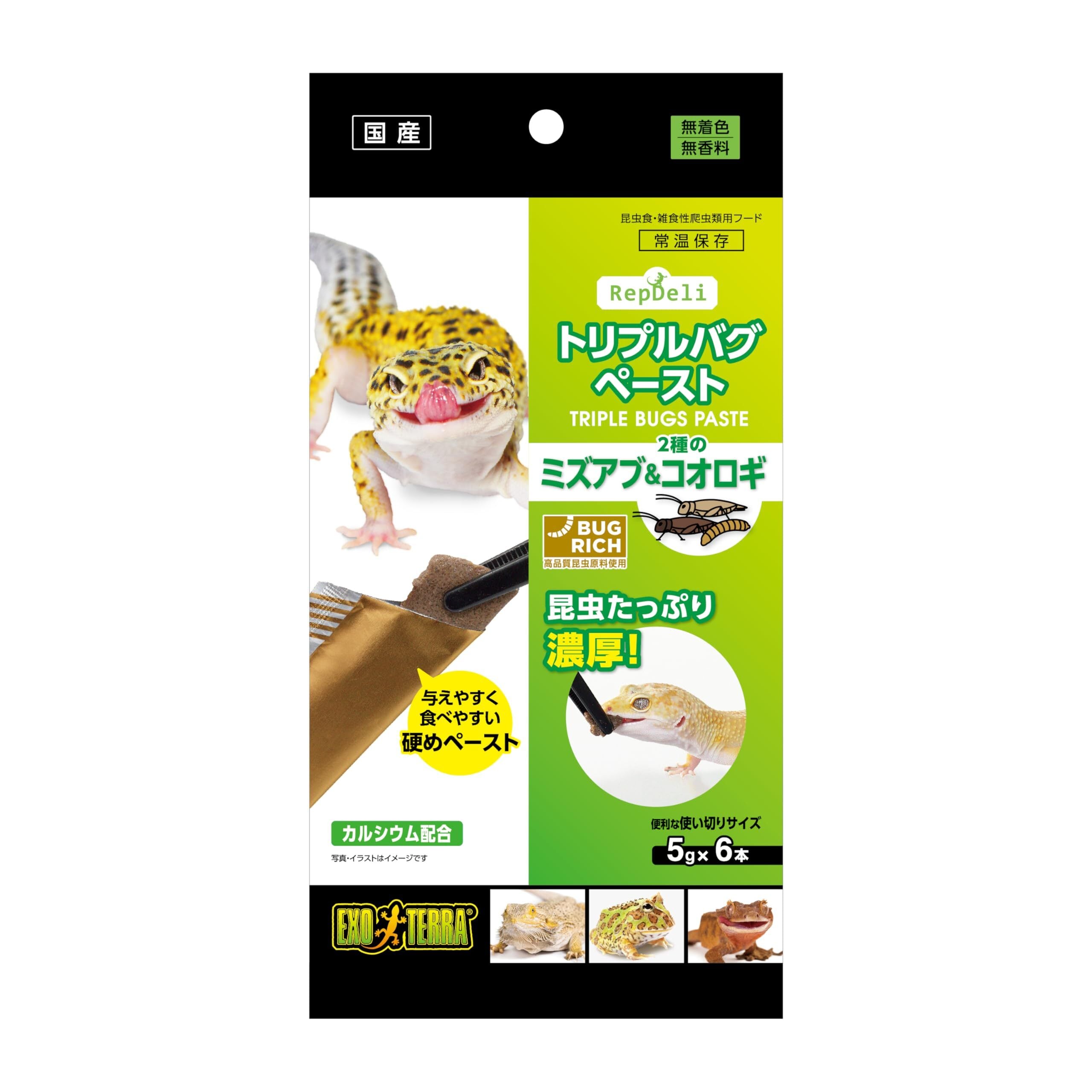 GEX EXOTERRA Repdeli トリプルバグペースト ミズアブ&コオロギ 与えやすく食べやすい硬めペースト 3種類の昆虫たっぷり濃厚 カルシウム配合 高嗜好性 昆虫食 爬虫類・両生類 レオパ 使いきりサイズ 5g×6本
