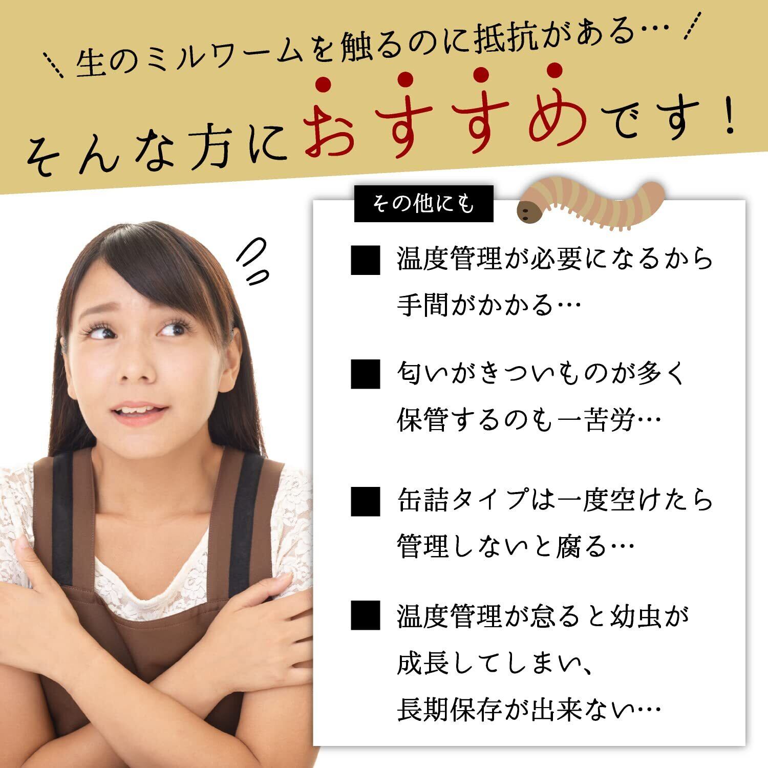 【無添加】100g2個セット 新鮮なミルワームを乾燥させて作りました。・のミルワームはさなぎ、成虫、種、木くずなど徹底して除去しております ・熟練の作業スタッフが毎日検品をしていて最高品質を自負しております ・のミルワームは人が検品をしいます