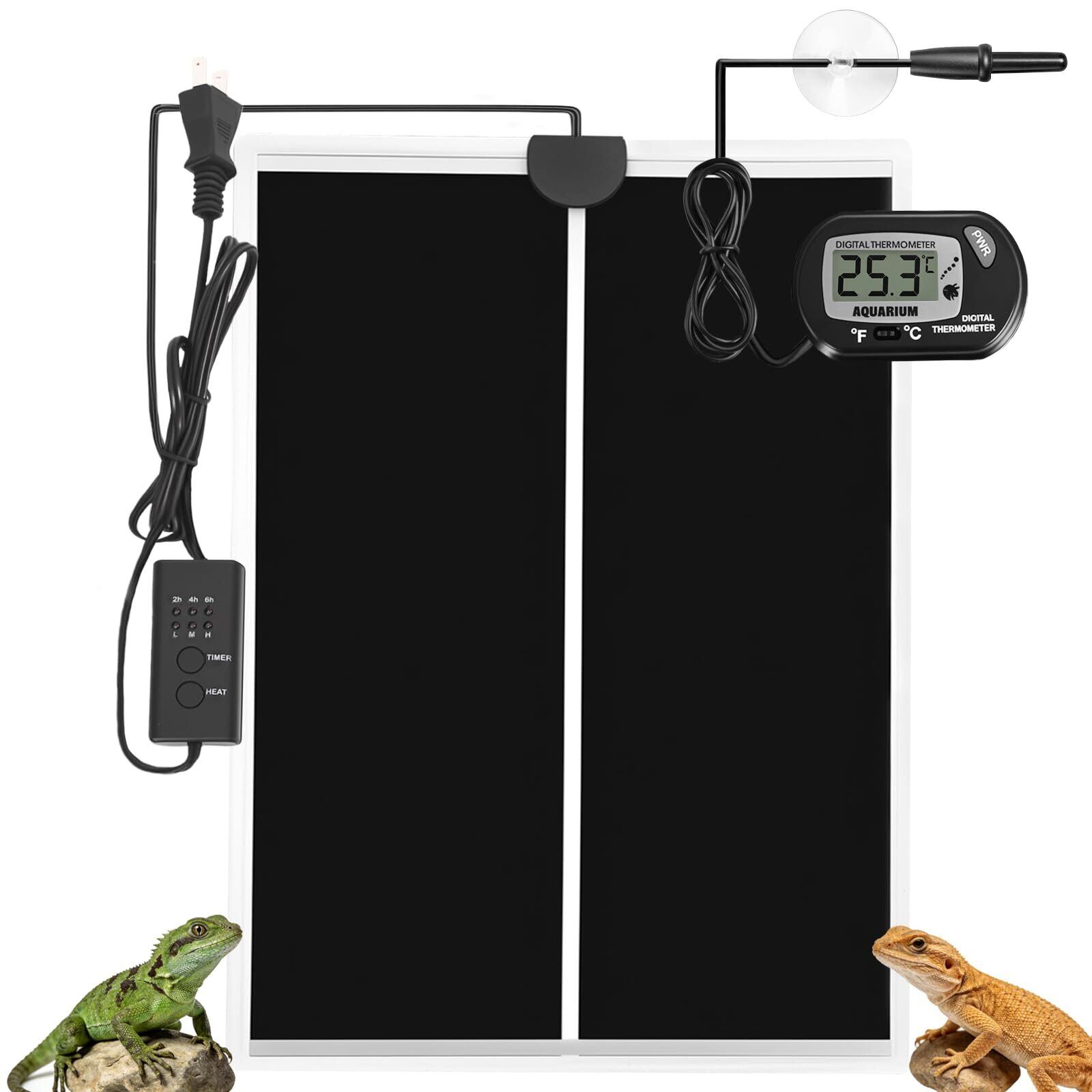 EUDMON 爬虫類 ヒーター ペット3段階温度調節(連続運転モード対応) パネルヒーター デジタル温度計付き 爬虫類加熱マット ペットヒーター 温度調節可能 加熱マット「IPX4 防水」 小動物対応 ハムスター ペット用品 両生類適用 保温 暖房 寒さ対策 (14W(28x28cm))