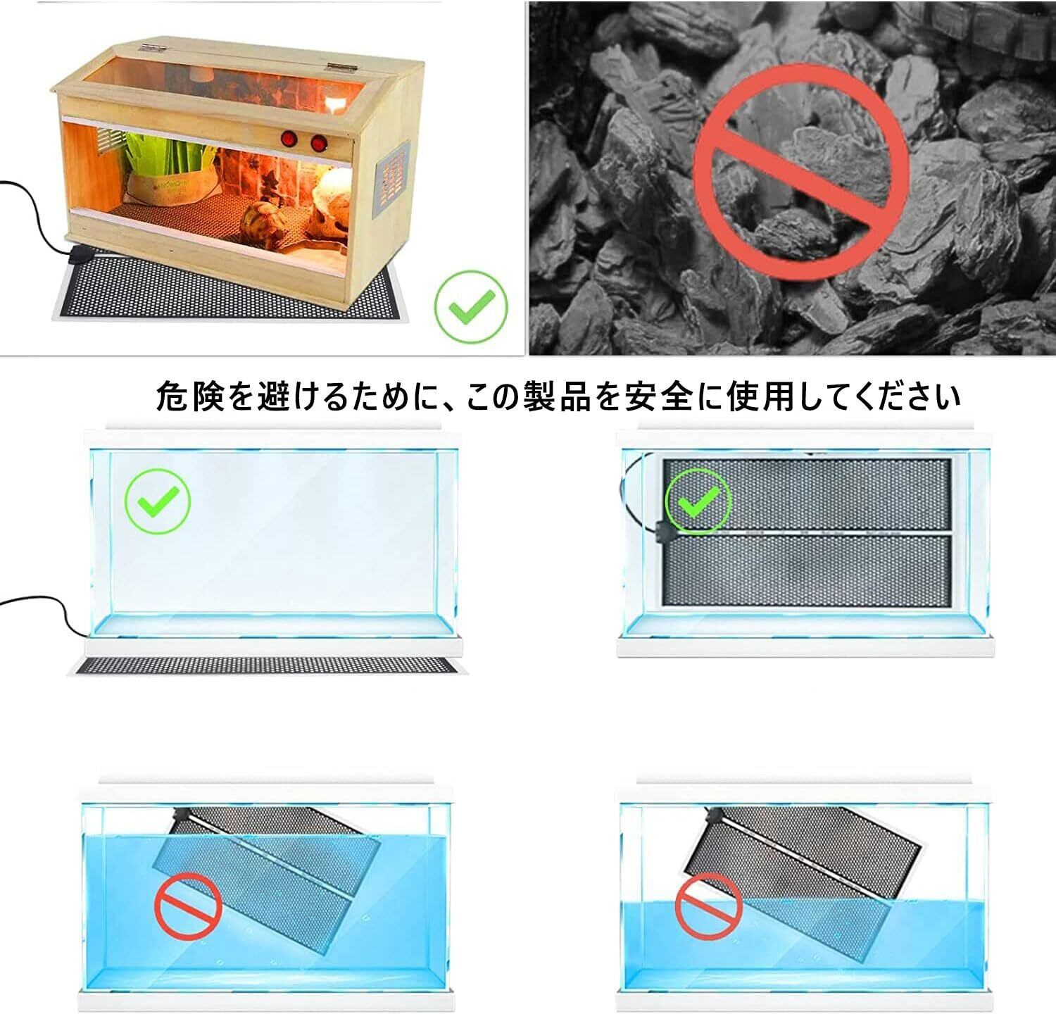 安全でバランスの取れた暖房: 爬虫類の暖房パッドは安全でバランスの取れた温度分布で、愛するペットや昆虫の繁殖に優しく暖かい熱を提供します。ご注意:爬虫類や昆虫をマットの上に直接置かないでください。