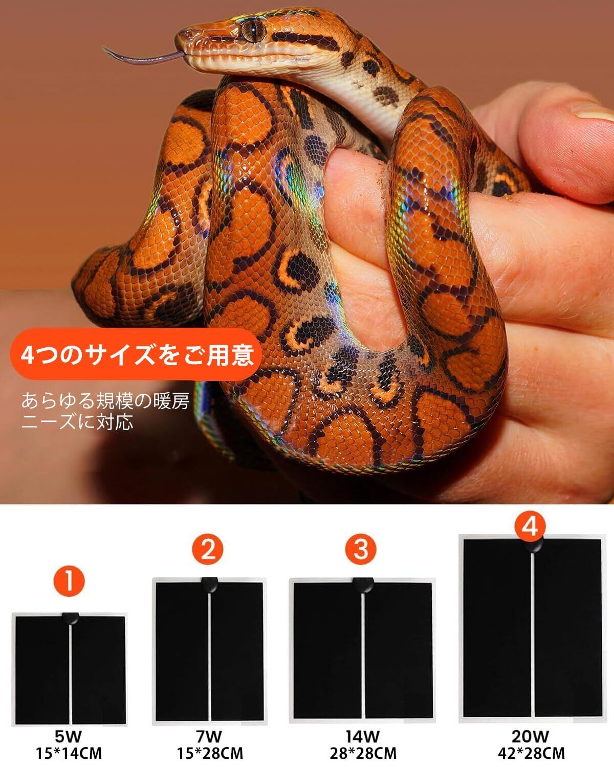 爬虫&両生動物活力アップ: ペットも人間と同じように温暖が好きです。加熱パッドは、爬虫、両生動物と小動物などの体温を調節し、食欲を増進するや脱皮を促進し、活力を高めます。あなたのペットが寒い気候で暖かく快適に保つのを手伝ってください。