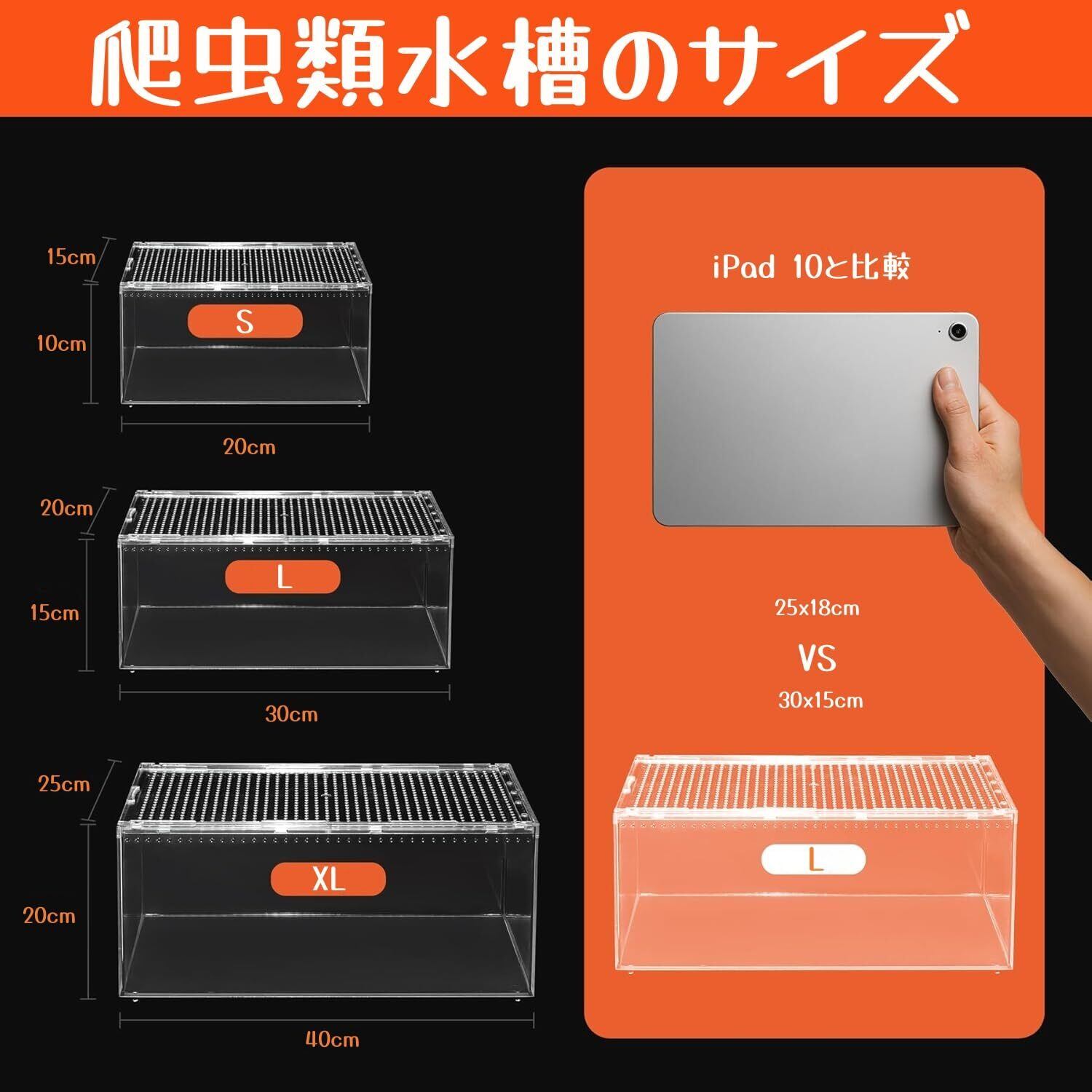 【汎用性の高いサイズ】:この爬虫類飼育ケースは、ペットにとって理想的な環境を提供します。コンパクトでありながら広々としたデザインは、ペットが自由に動き回り、快適に探索し、生息地で繁栄することを可能にします。