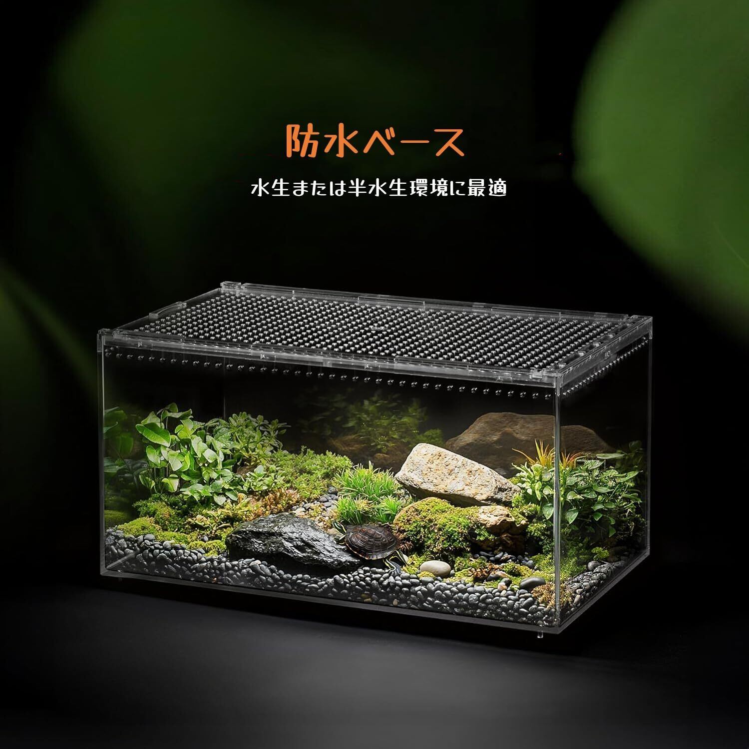 【通気性に優れた設計】:上部と側面に多数の通気孔を設け、水槽内の空気の流れを完璧に確保します。カメレオン、ヤモリ、タランチュラ、ヤドカリなどの小型爬虫類や昆虫の飼育に最適です。