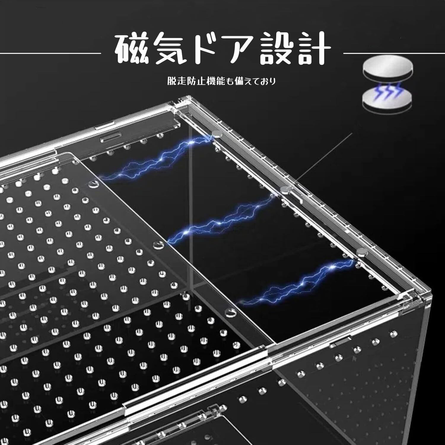 【組み立て不要】:水槽は一体型の防水構造で、組み立ては不要です。上部のマグネット式ドアにより脱走防止機能も備えており、ヤドカリ、ハエトリグモ、その他の小型爬虫類の飼育に最適です。