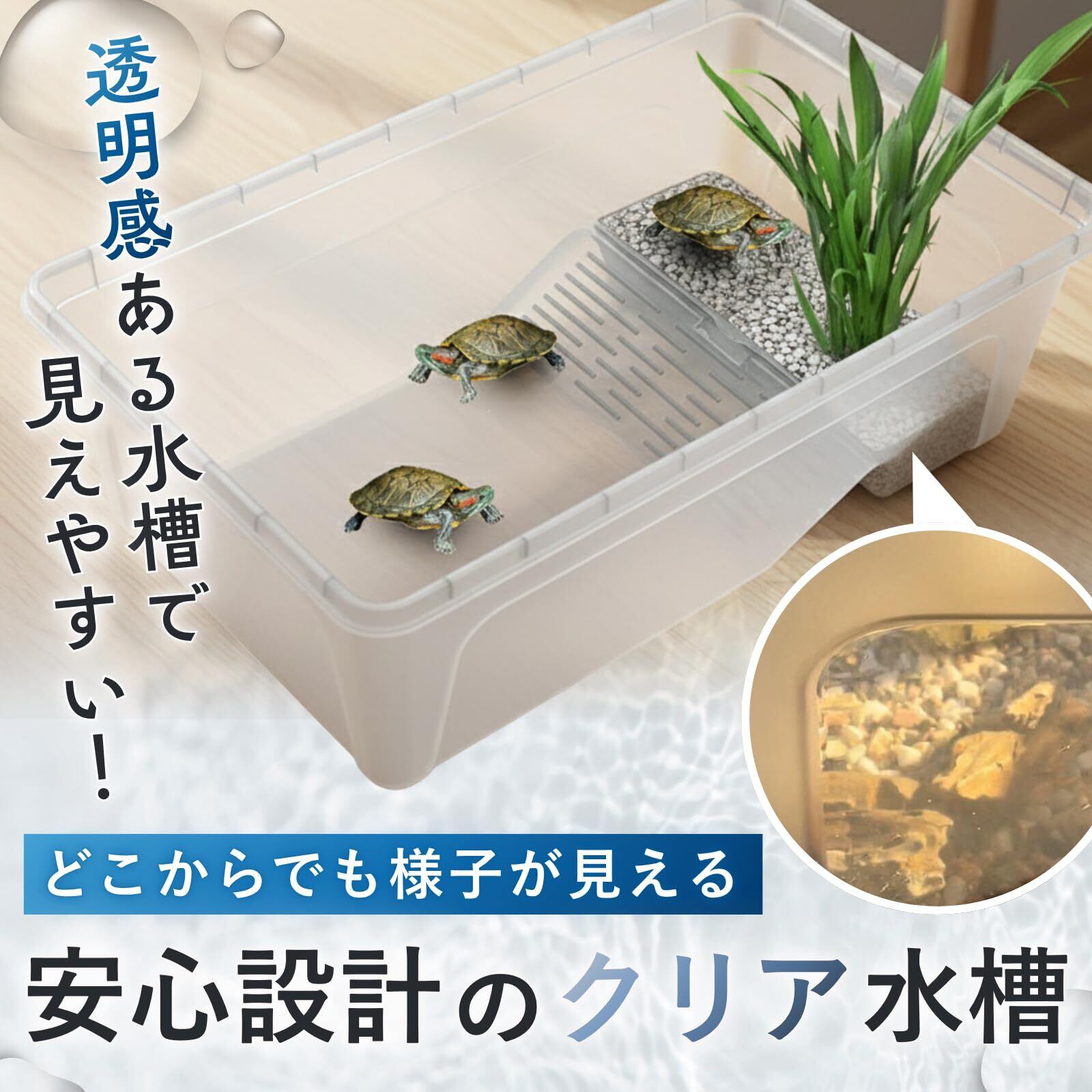 【飼育や観察がしやすい】360度の視野を確保した半透明なデザインで、亀の動きや仕草を細部まで楽しめます。