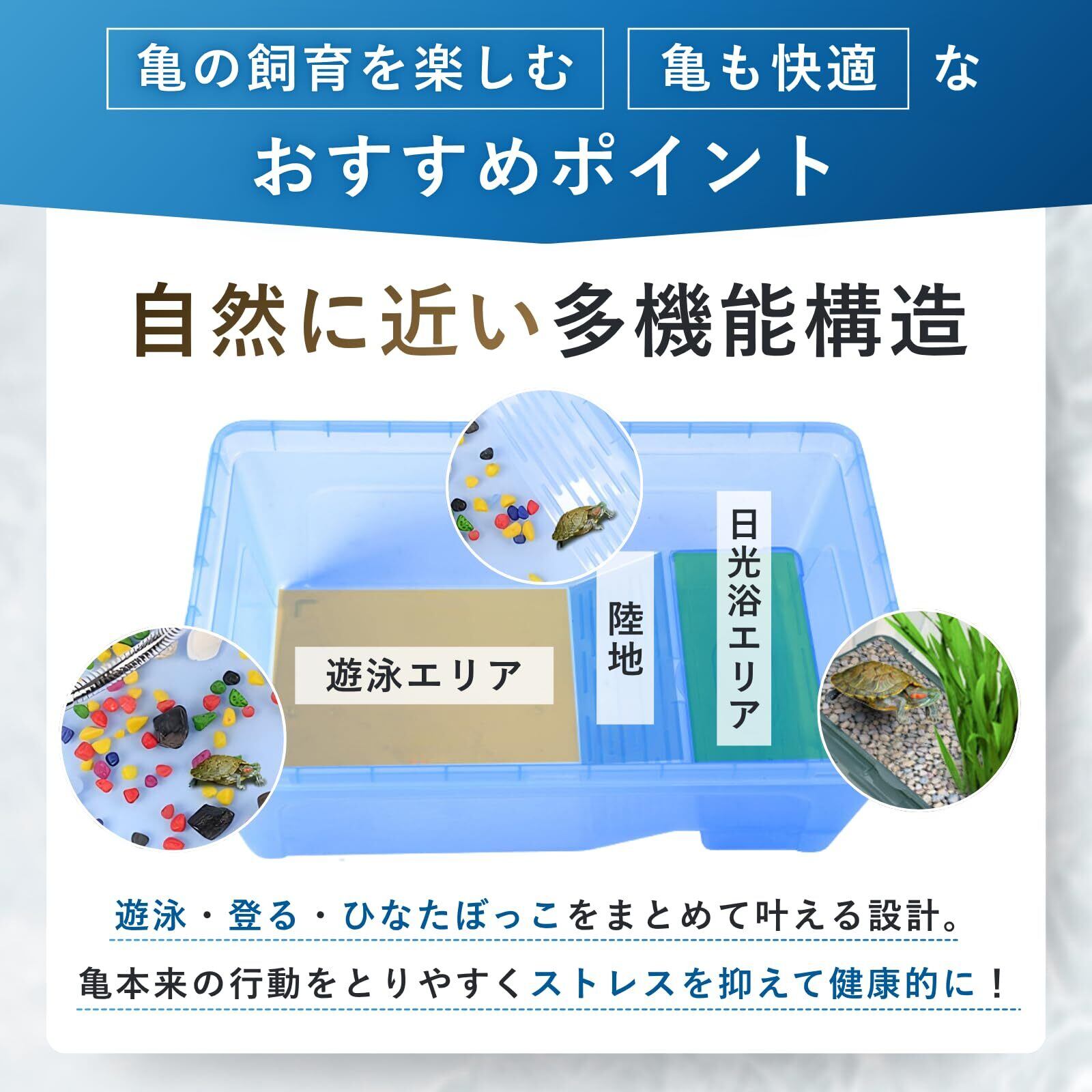 【快適な環境を提供】亀がリラックスできる広いスペースと風景エリアが組み合わさった、水槽の中でのストレスを軽減するデザインです。