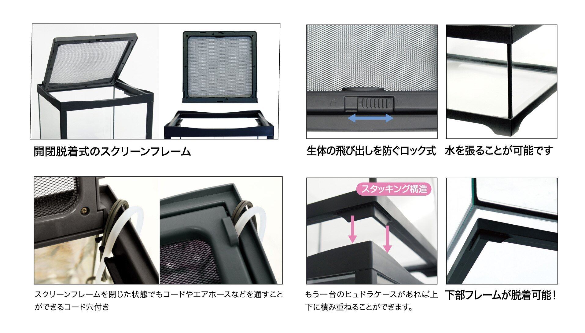 ガラス製で透明度が高く、キズつきにくい爬虫類・両生類飼育ケース